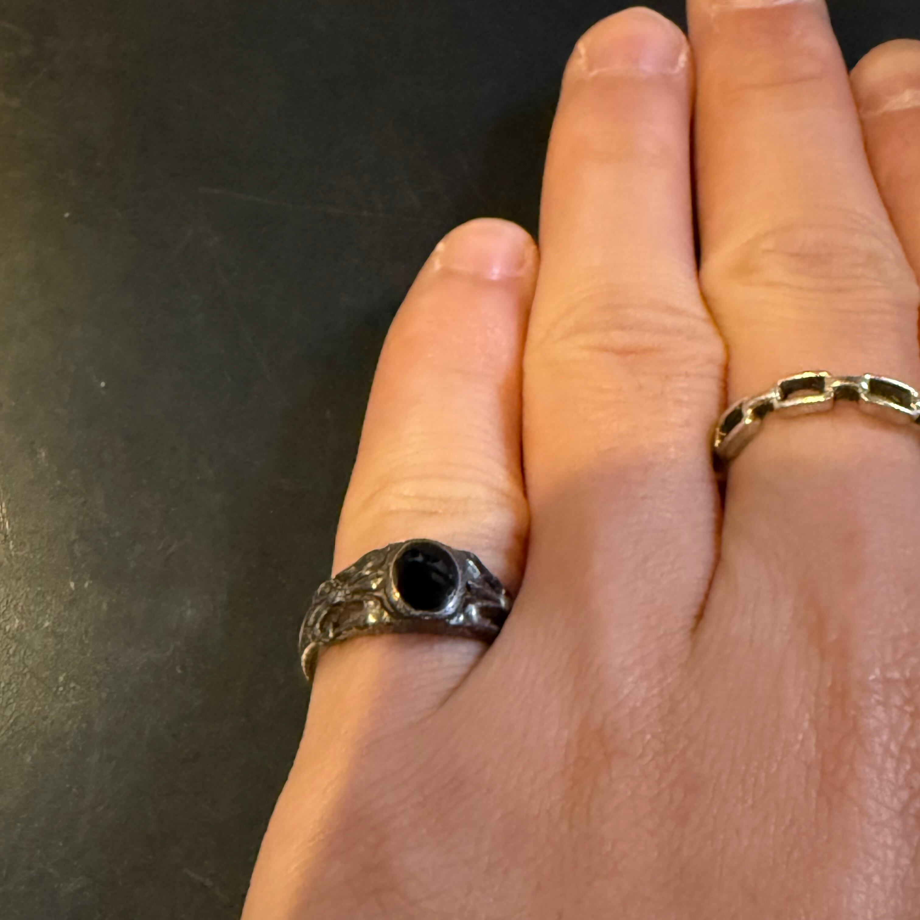 海外で買い付けたブラックストーンデザインのシルバーリングです。