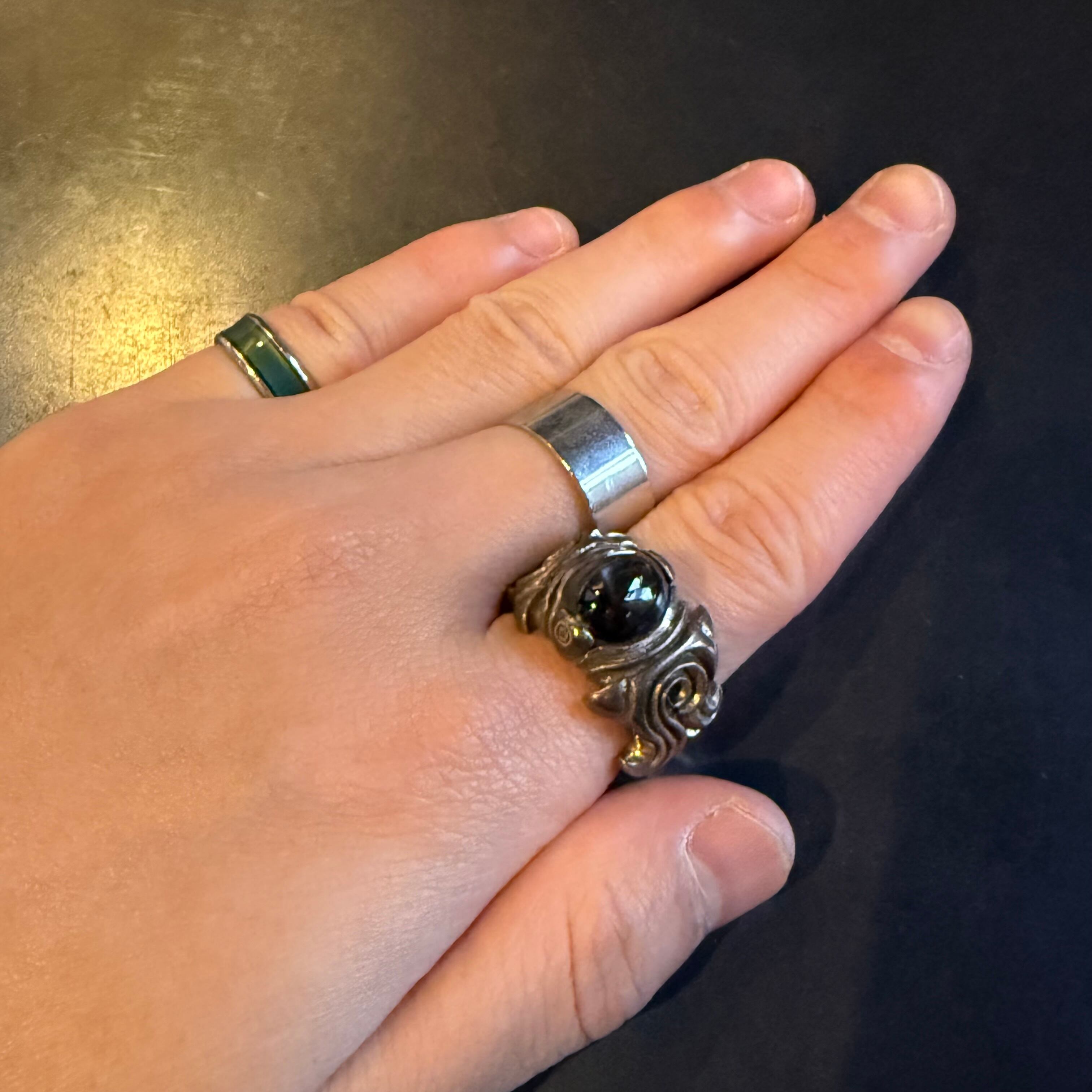 海外で買い付けたオニキスストーンデザインのシルバーリングです。