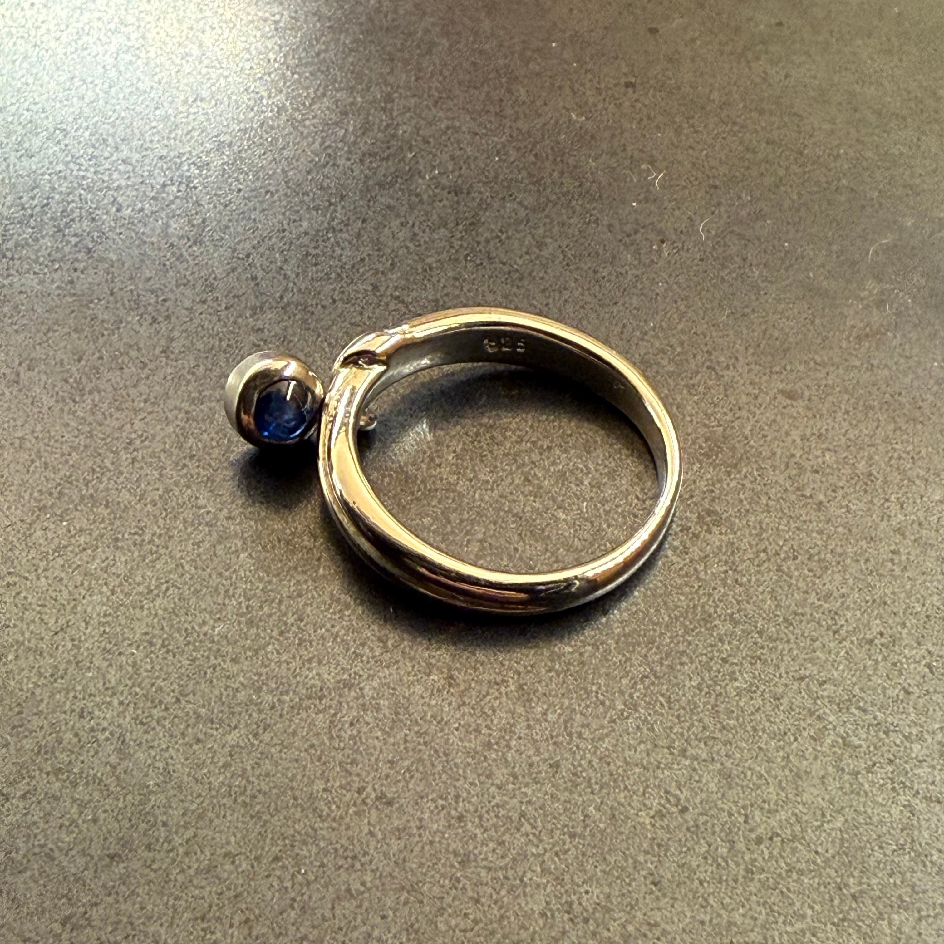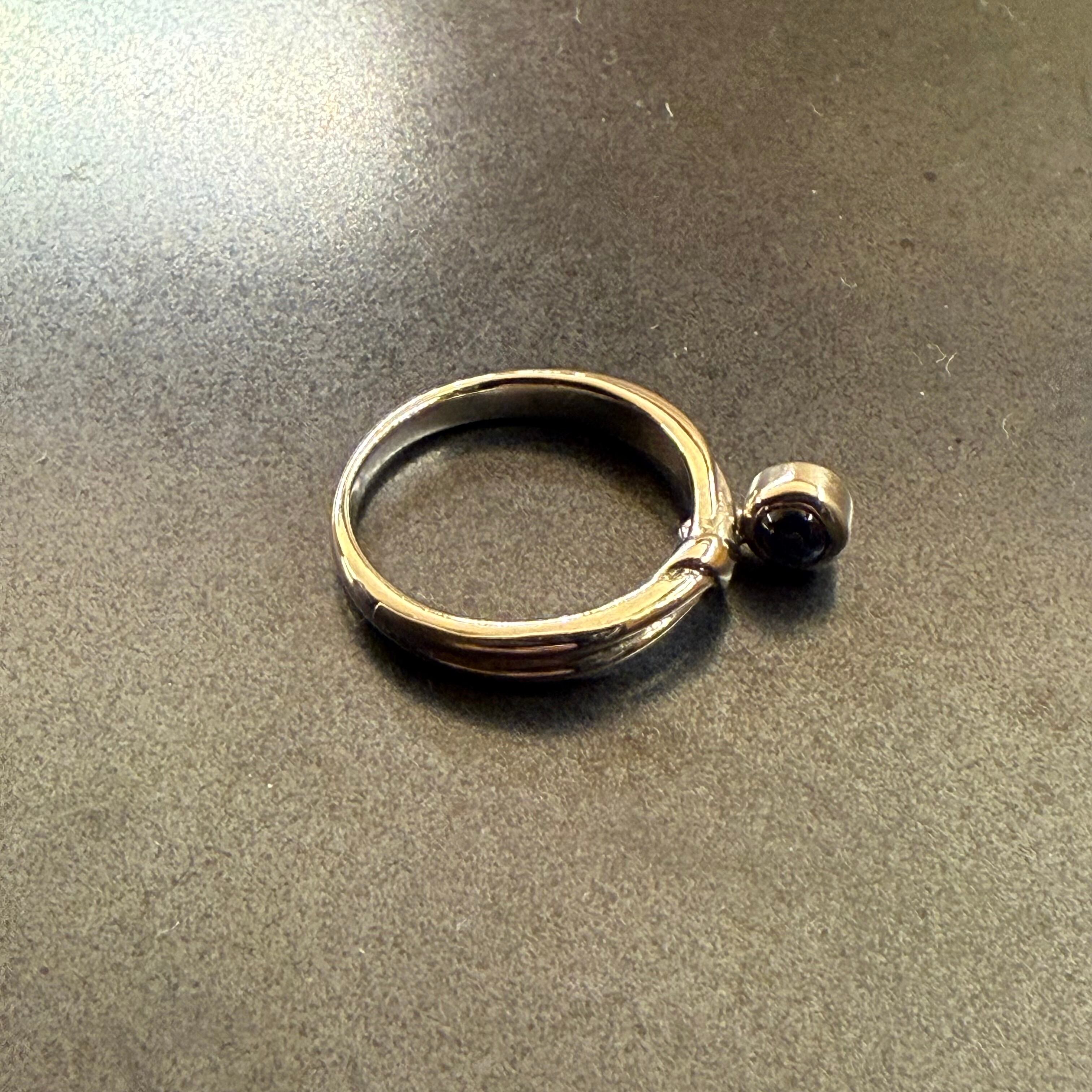 海外で買い付けたストーンモチーフチャームデザインのシルバーリングです。