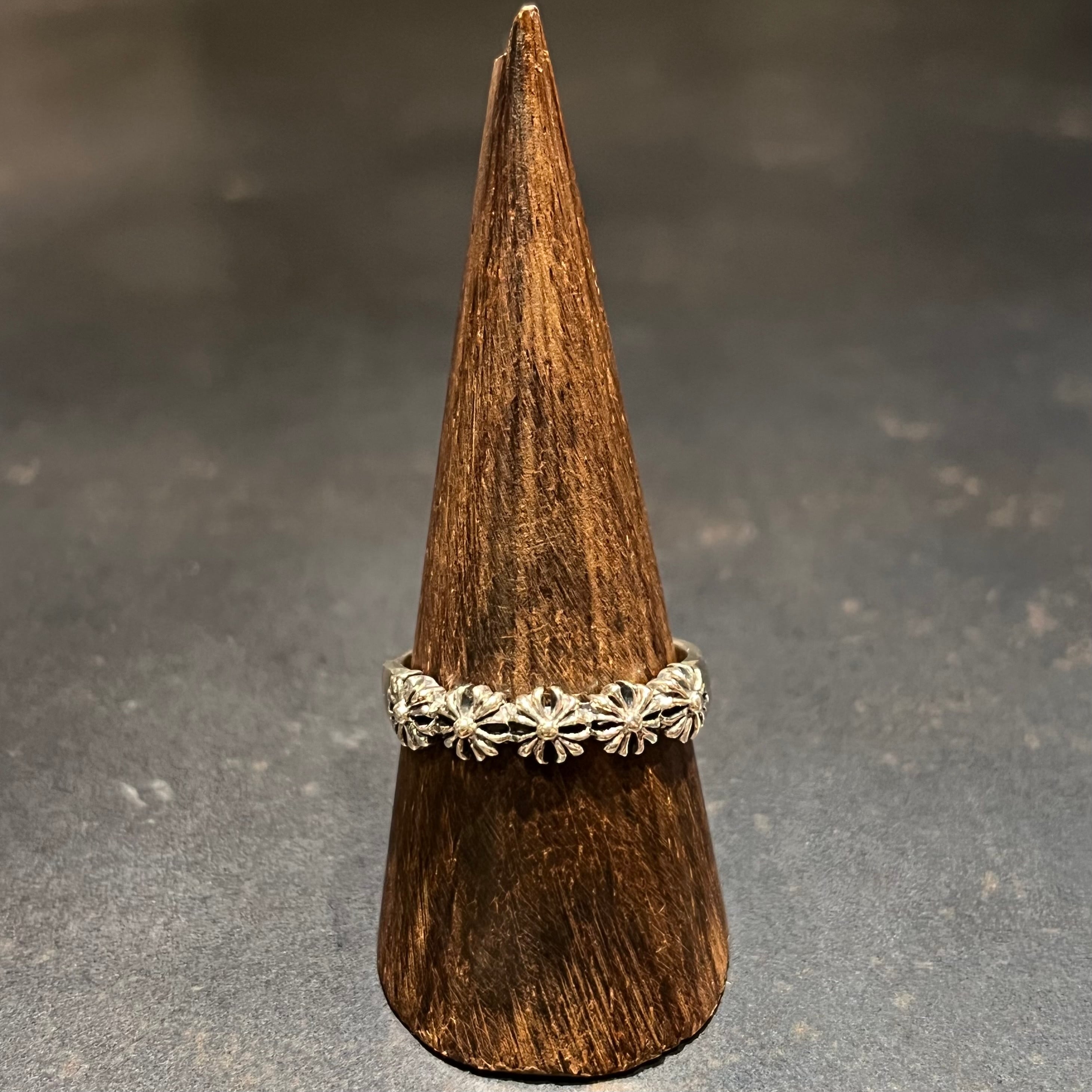 海外で買い付けた5連リンクドクロスデザインのシルバーリングです。