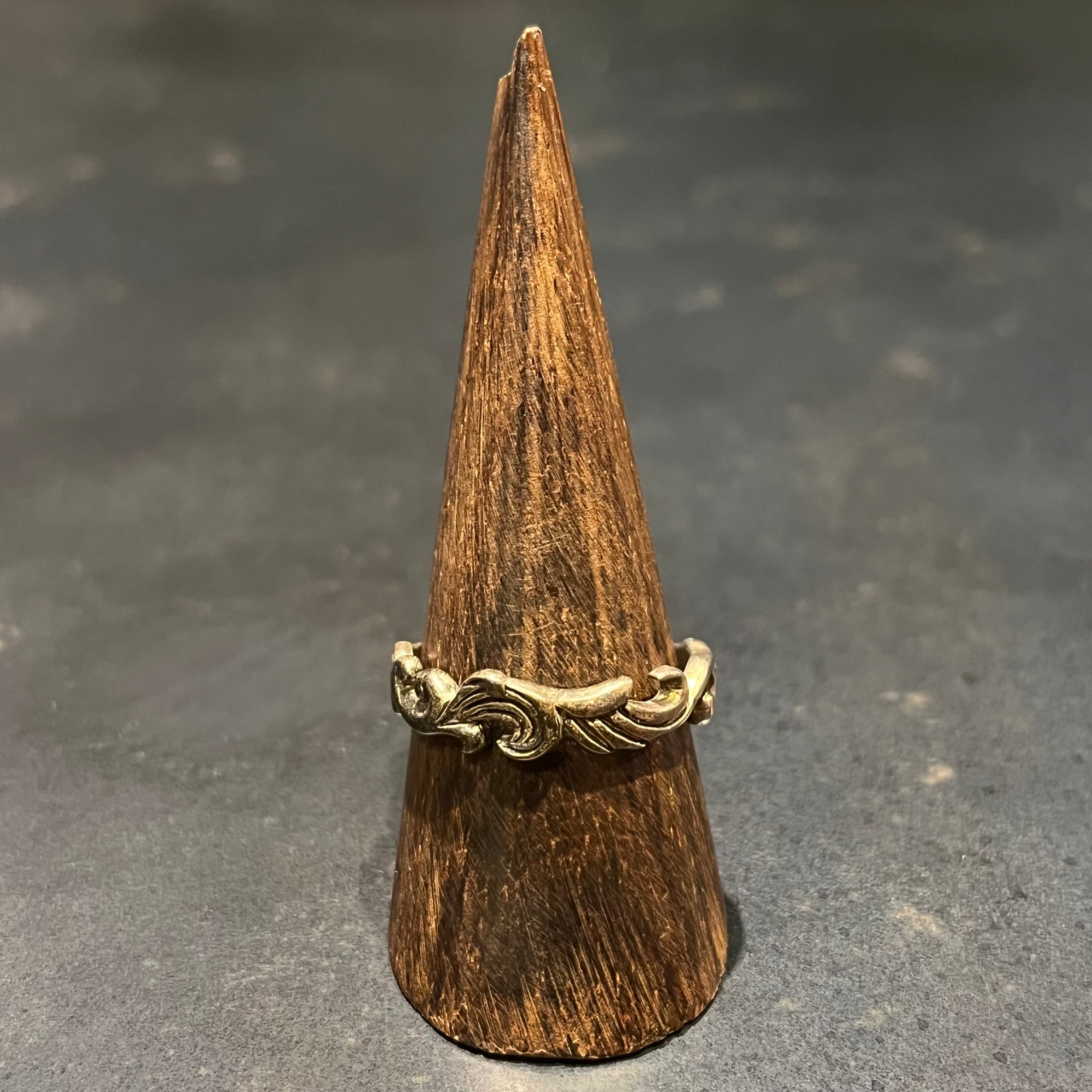 海外で買い付けたスワールモチーフウェービートライバルデザインのシルバーリングです。