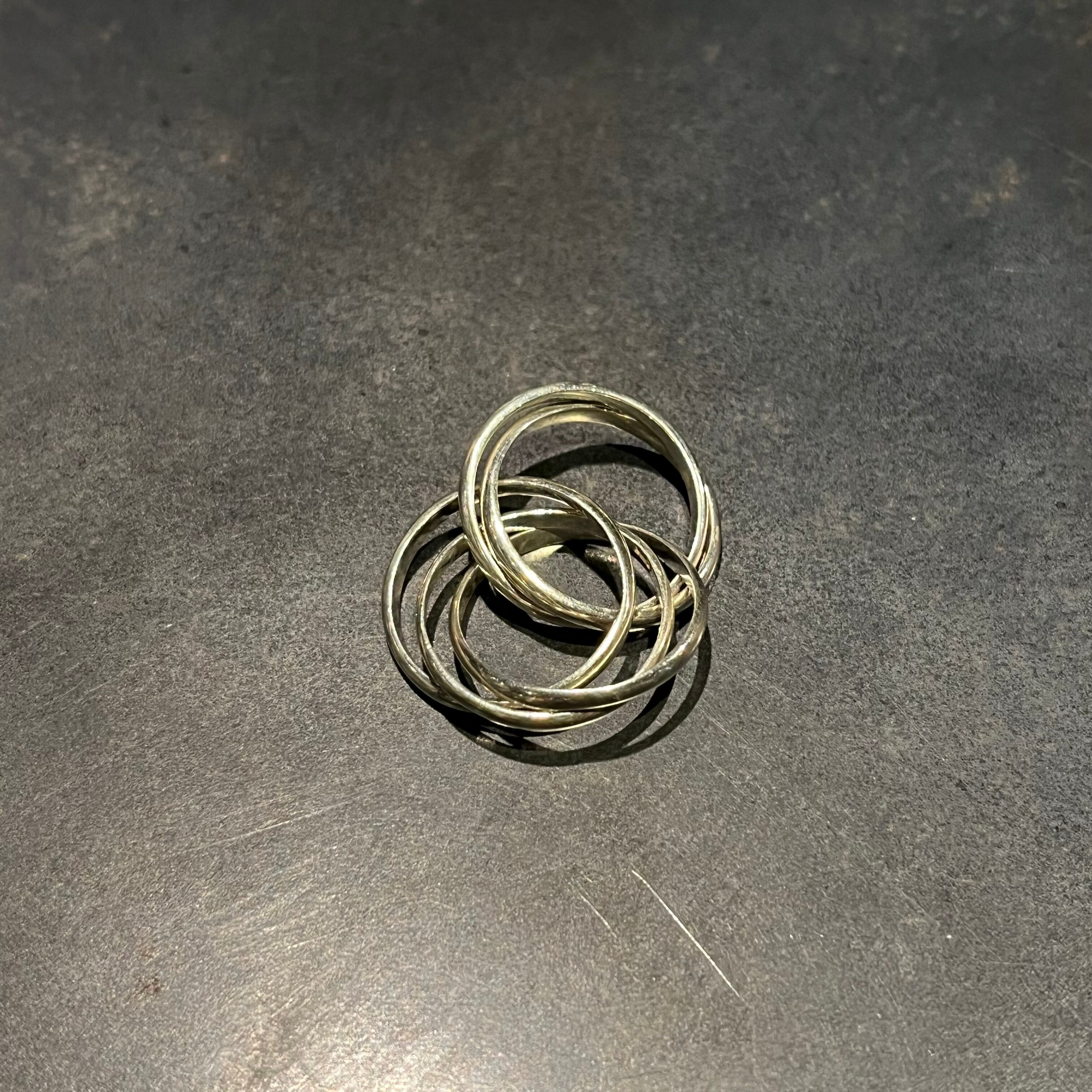 海外で買い付けた5連フープリンクドデザインのシルバーリングです。