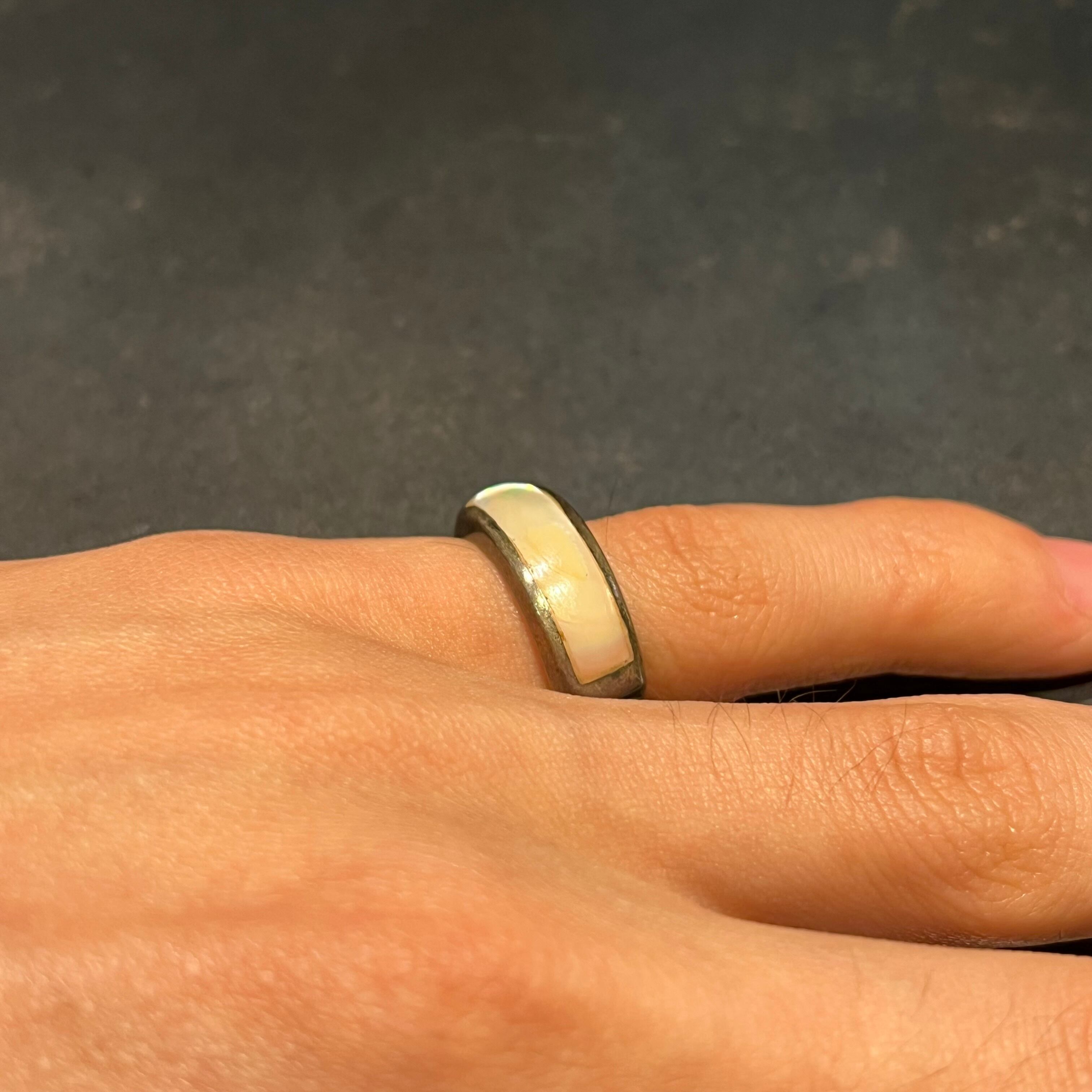 海外で買い付けたマザーオブパール(真珠母貝)ストーン・インレイデントデザインのシルバーリングです。