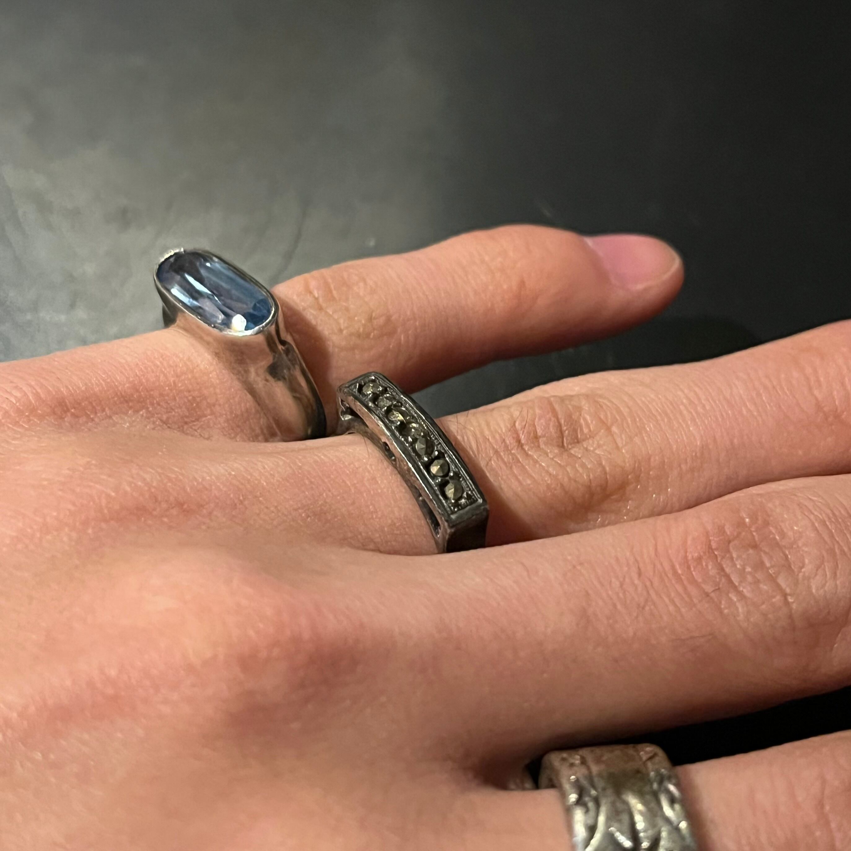 海外で買い付けたグリッタースクエアセッティングデザインのシルバーリングです。