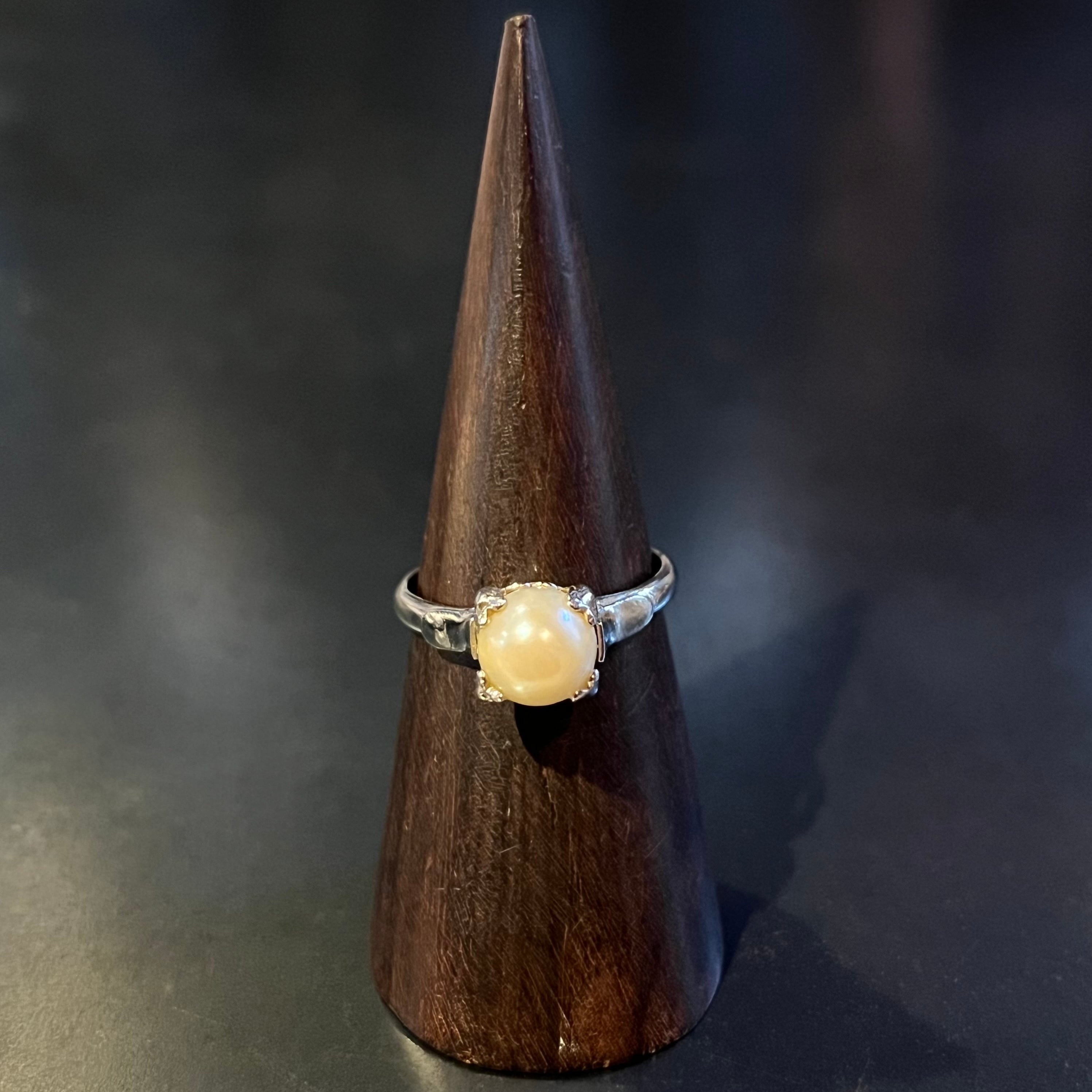 海外で買い付けたパールモチーフセッティングデザインのシルバーリングです。