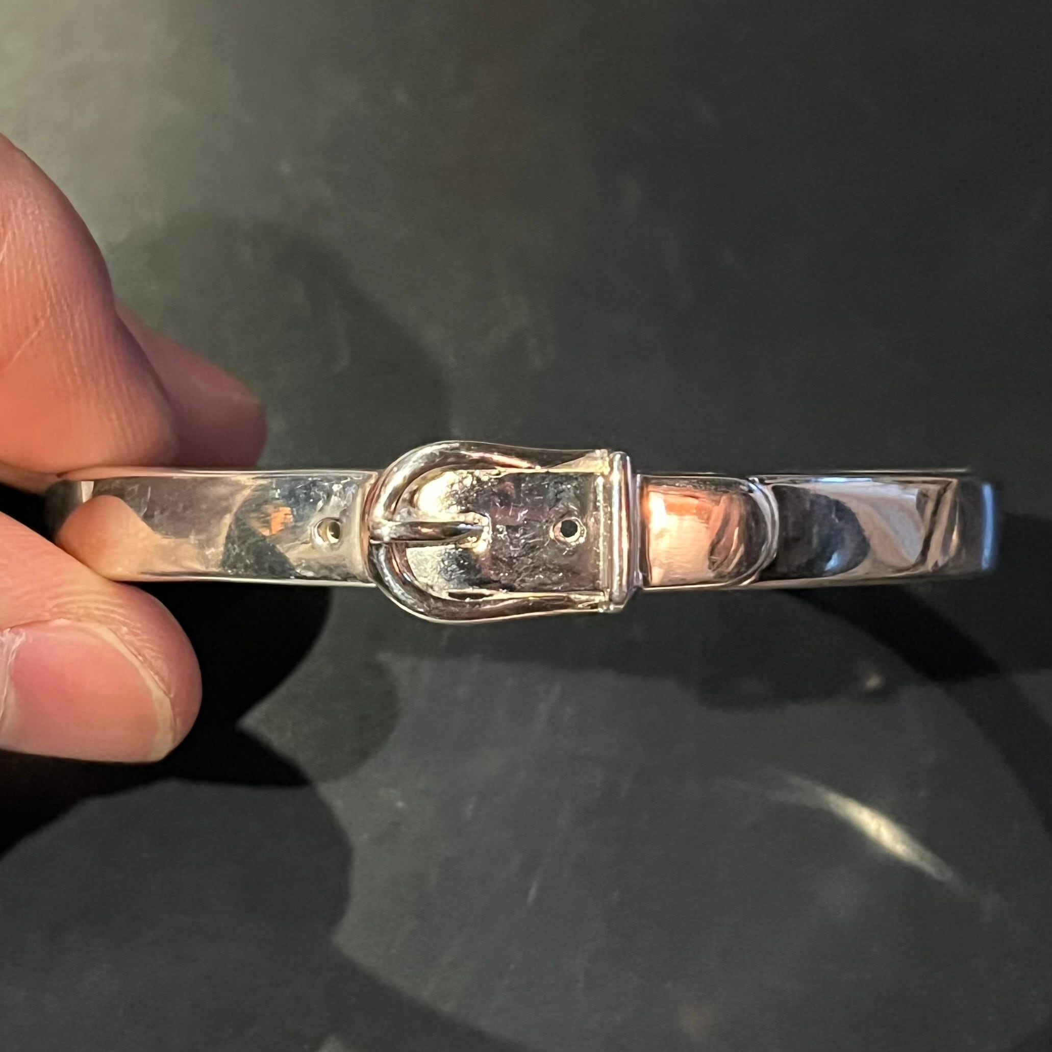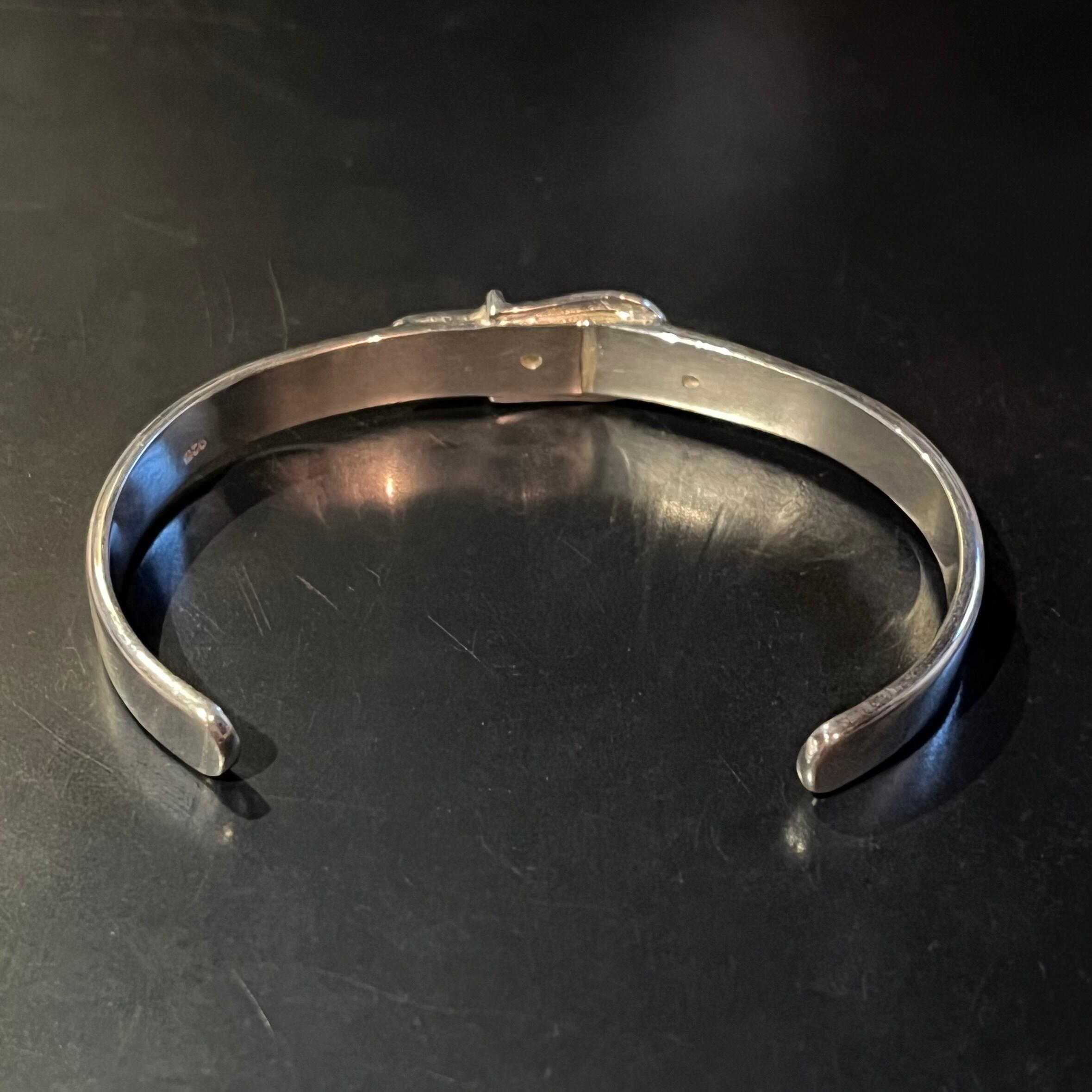 海外で買い付けたバックルモチーフベルトデザインのシルバーバングルです。