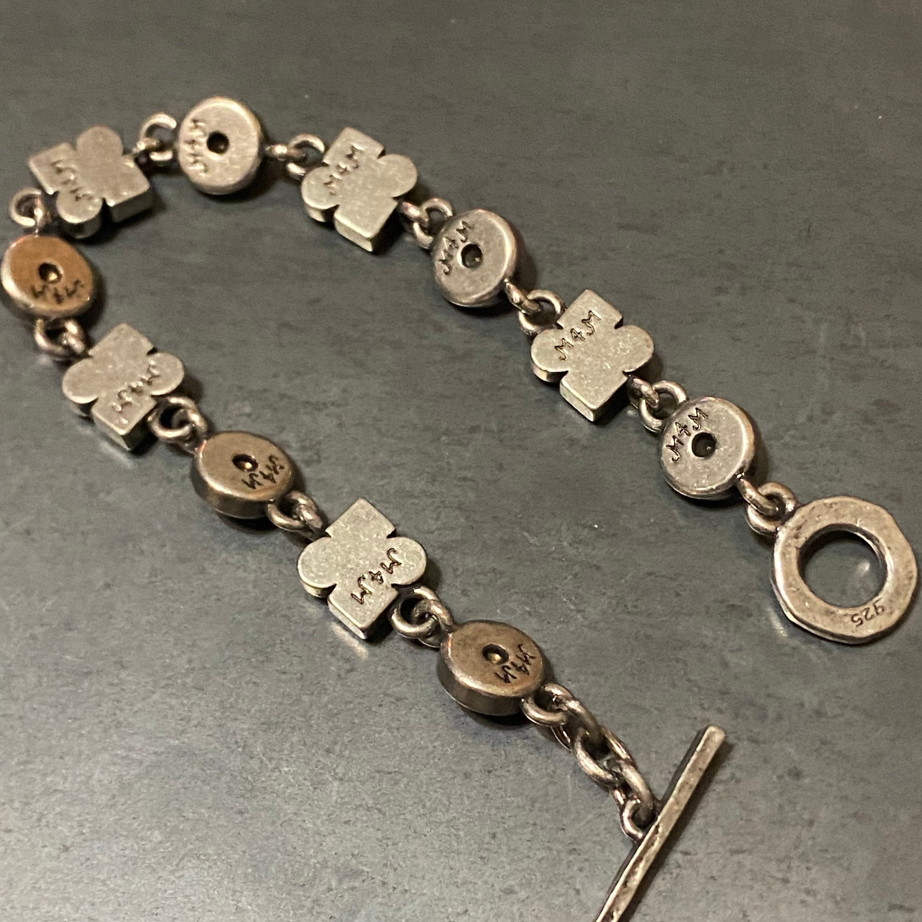 海外で買い付けたストーンモチーフトライバルデザインのシルバーブレスレットです。
