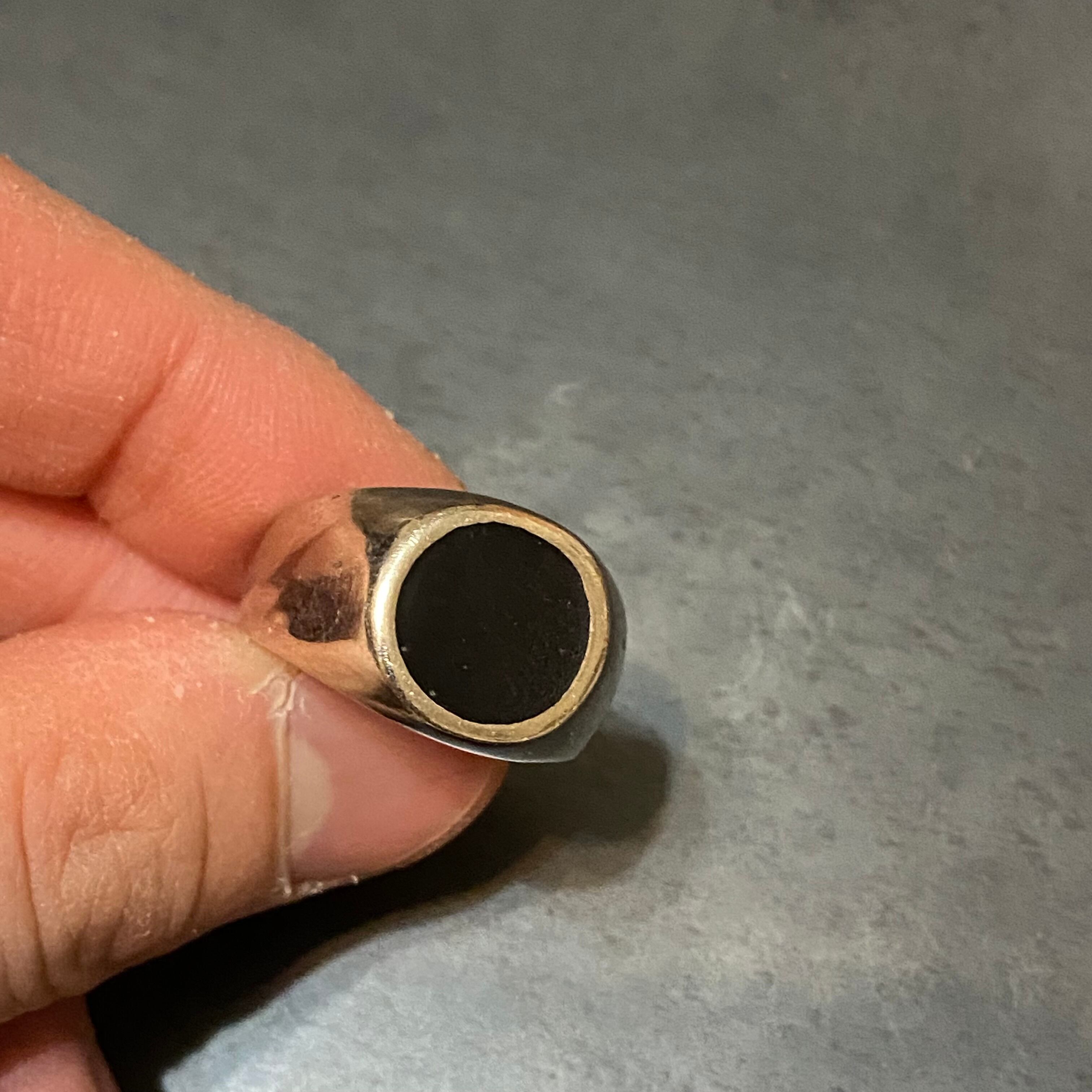 海外で買い付けたオニキスデザインのシルバーリングです。