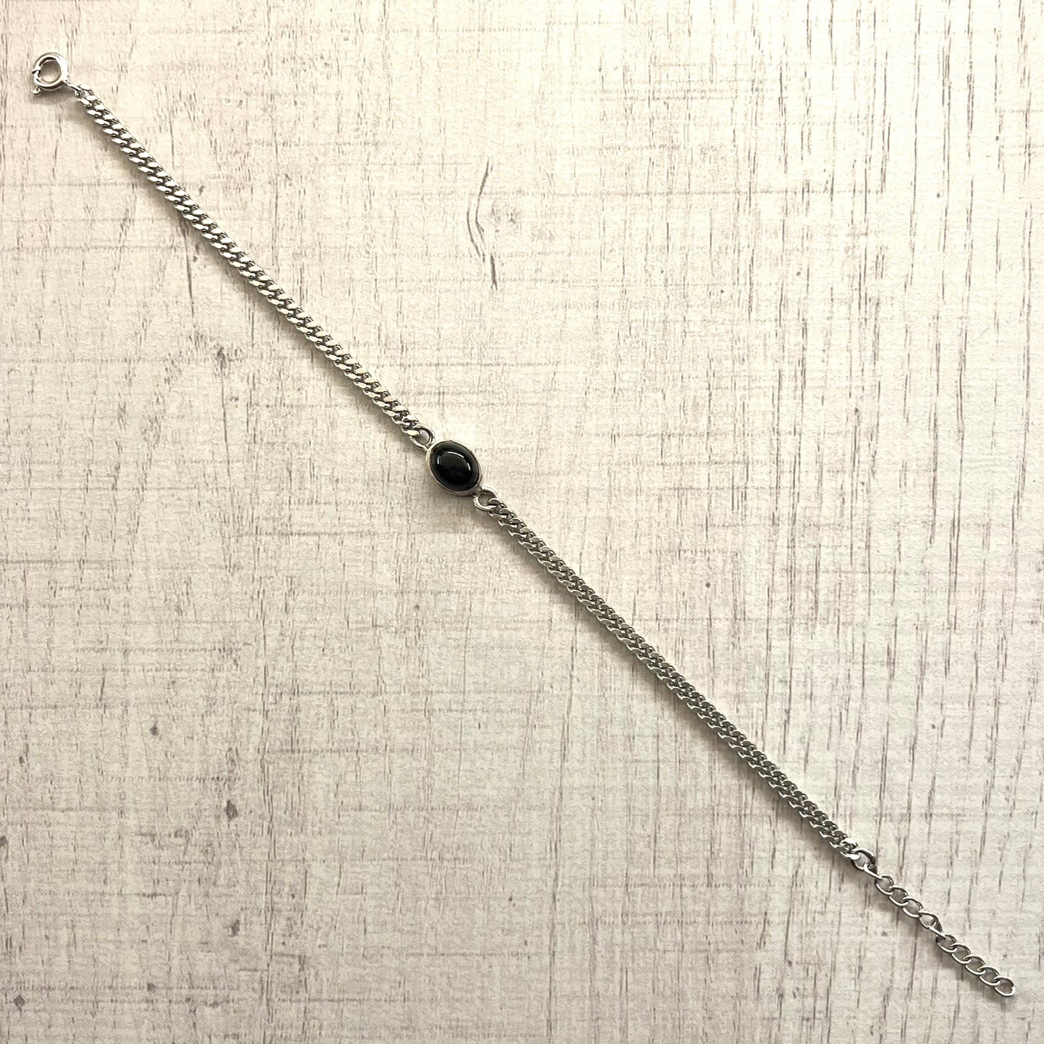 ONYX STONE MOTIF FLAT LINKED CHAIN BRACELET -SILVER925- チェーンブレスレット