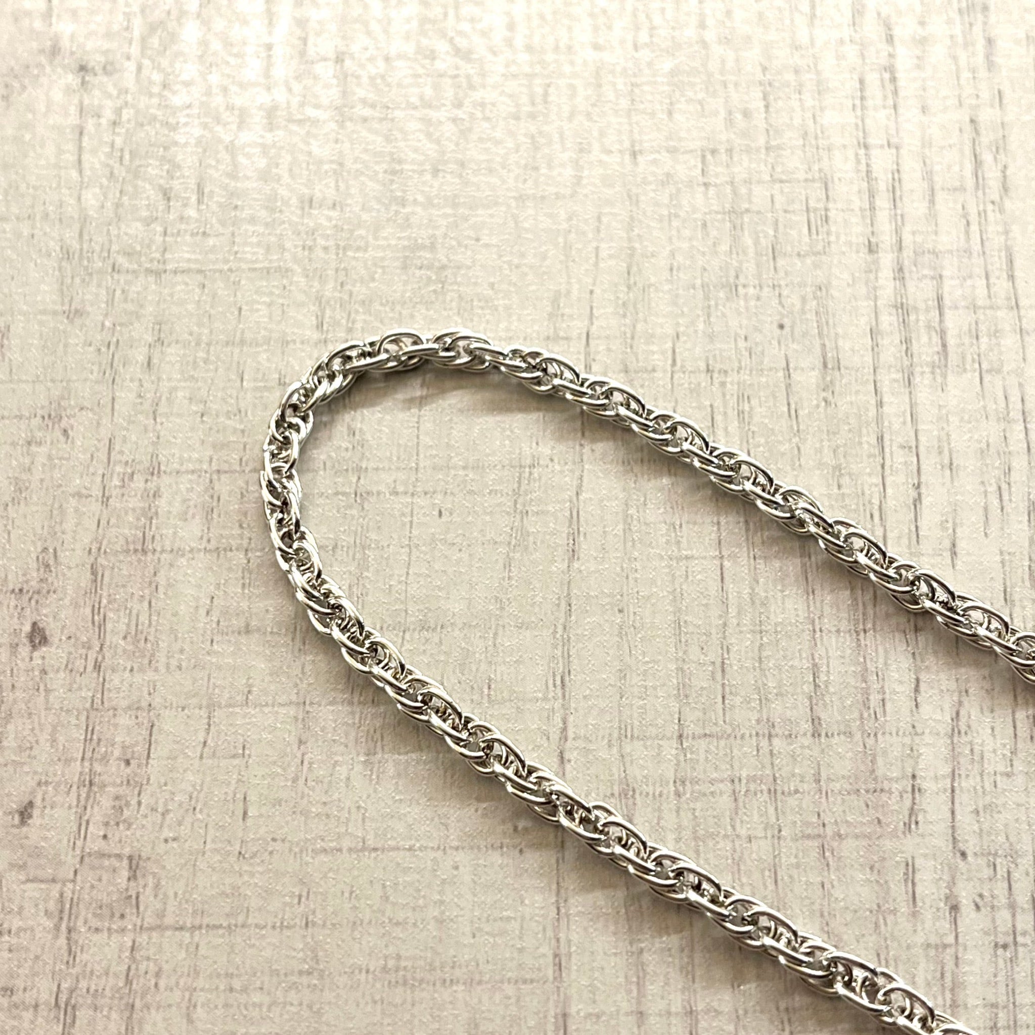 よく見られるロープチェーンとは違い、チェーンの捻りと間隔が緩めに作られているため、着け心地が良く着脱もしやすい、日常使いにもおすすめの逸品です。