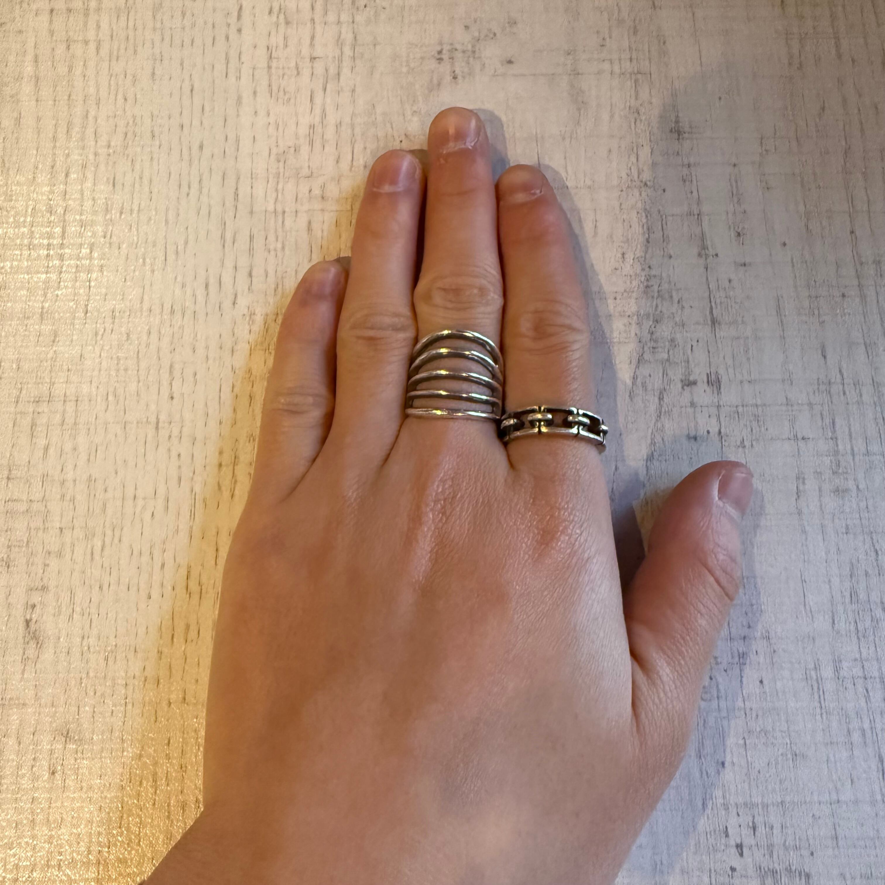 チェーンリンクをモチーフにした、存在感のあるデザインリングです。