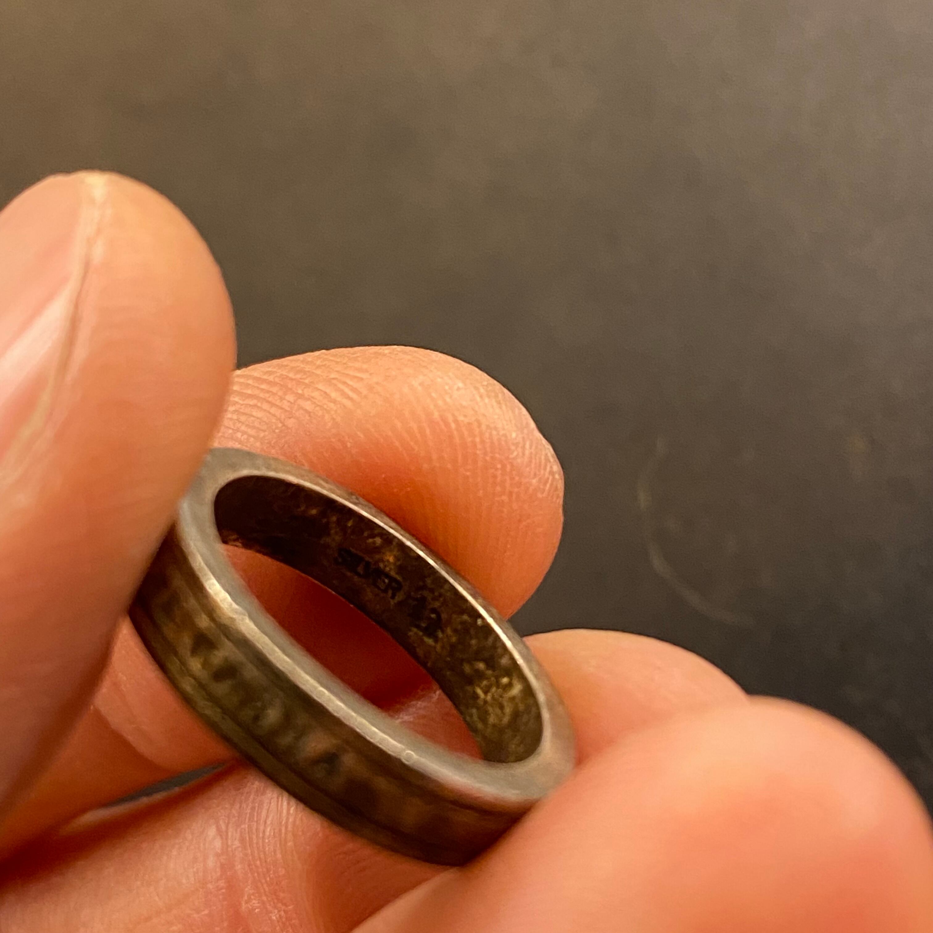 海外で買い付けた掘り込みデザインのシルバーリングです。