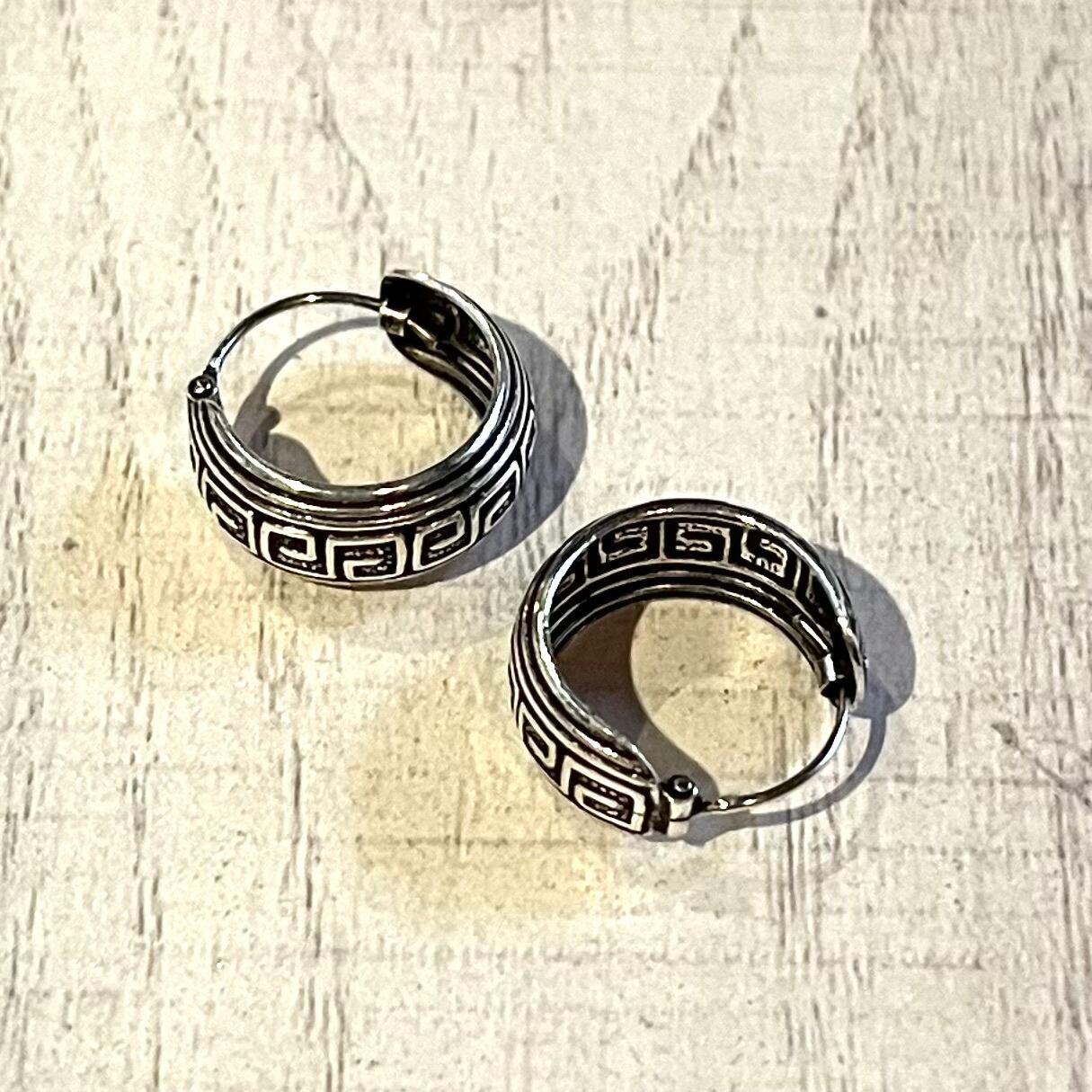 TRIBAL SQUARE SPIRAL HOOP EARRINGS -SILVER925- フープピアス