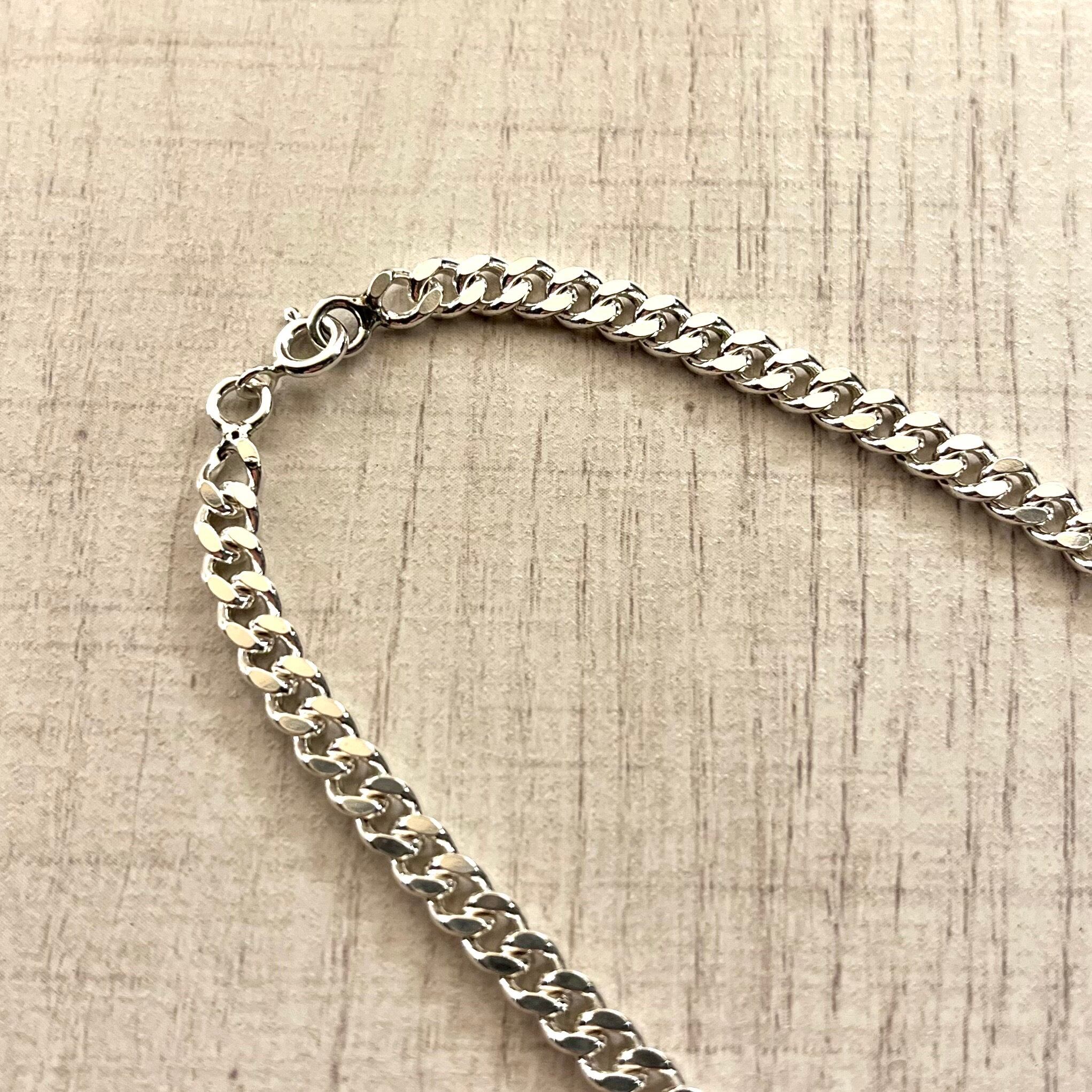 スタイリングに自然と溶け込みながらも、確かな存在感を放つシルバーネックレスです。主張しすぎないため、日常使いにも取り入れやすいデザインで、さりげなくアクセントを加えたい方におすすめの逸品です。