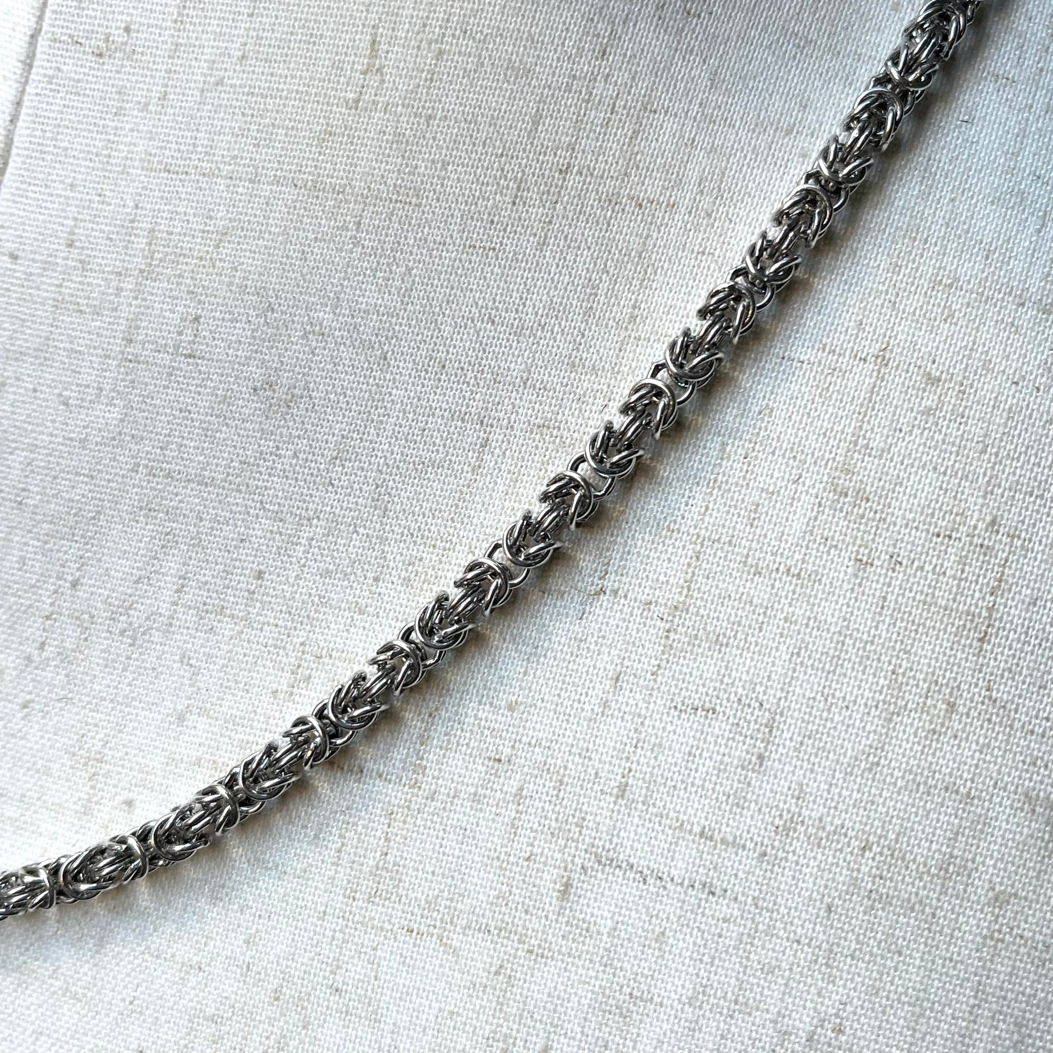 トライバルなデザインが存在感抜群で、首元に力強い印象を与えてくれます。エスニックな雰囲気とモダンさを併せ持ち、シンプルなスタイリングのアクセントとして活躍する、主役級の逸品です。