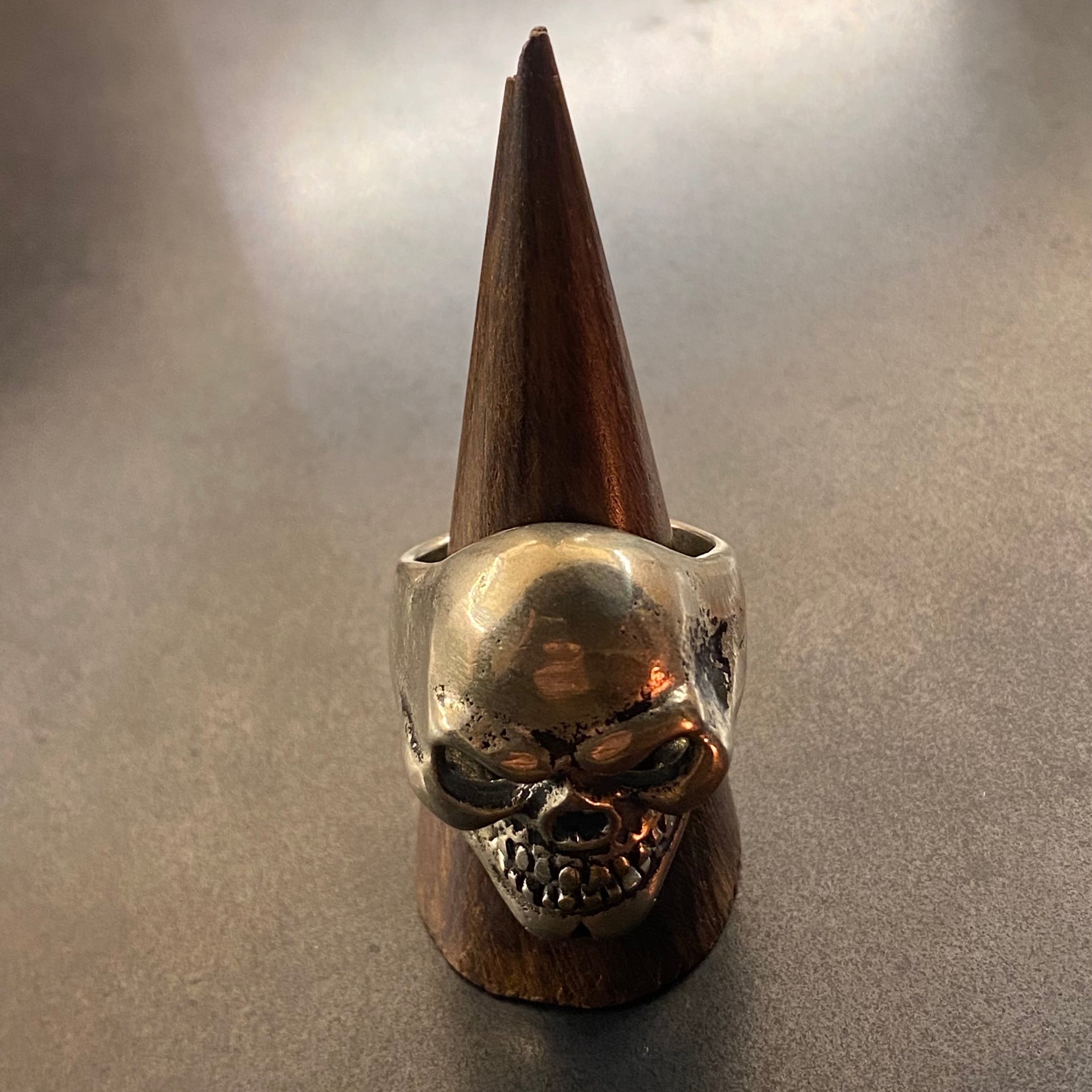 海外で買い付けたビッグスカルデザインのシルバーリングです。