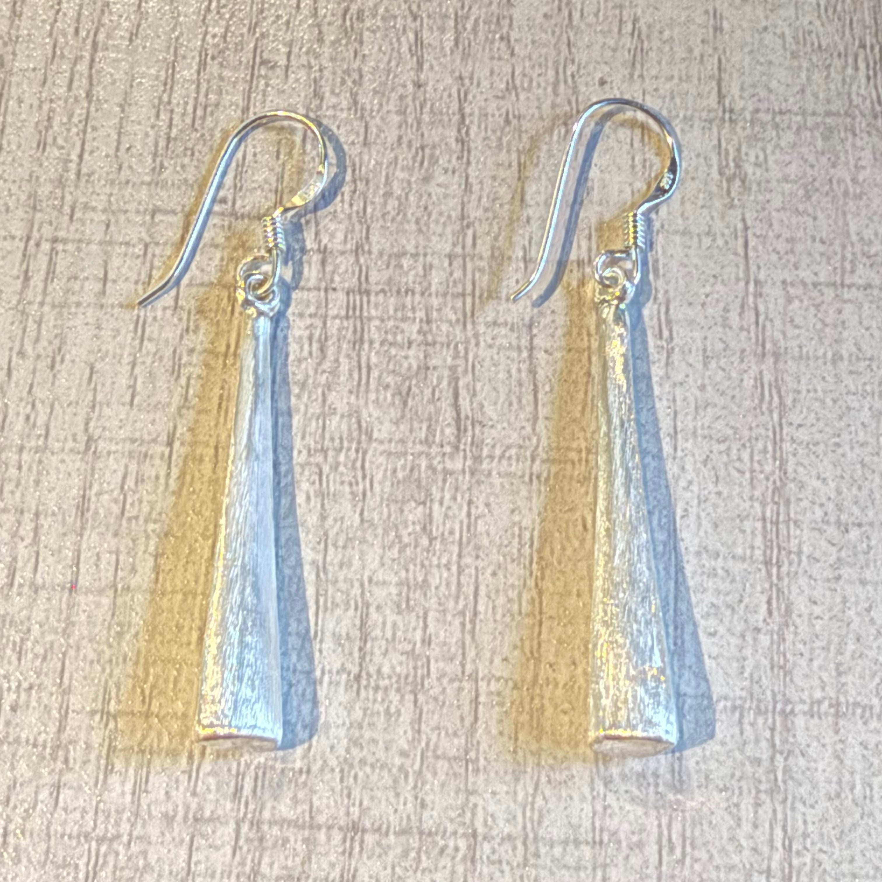 先細りのフォルムが美しい、テーパードドロップデザインのフックピアスです。