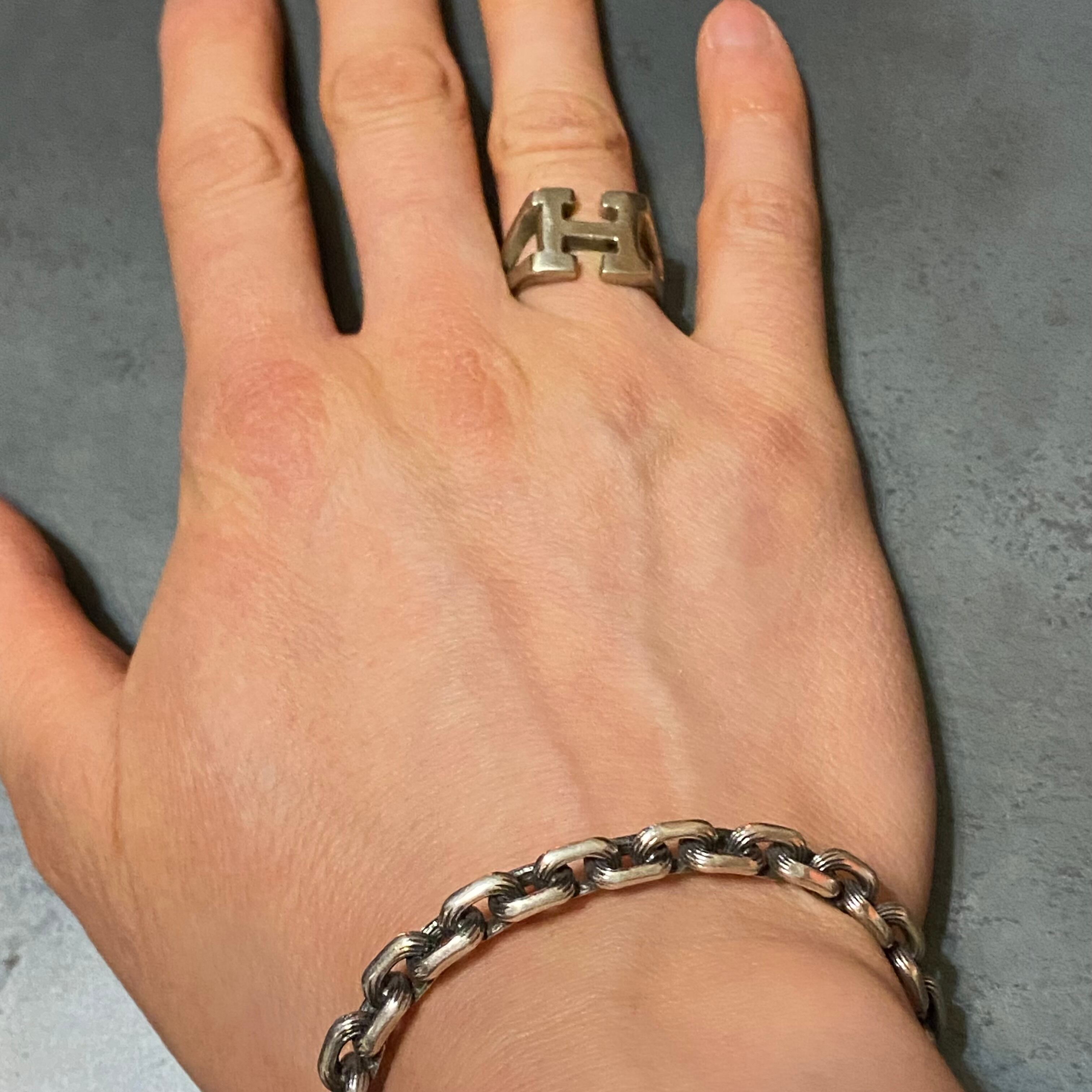 海外で買い付けたHデザインのシルバーリングです。