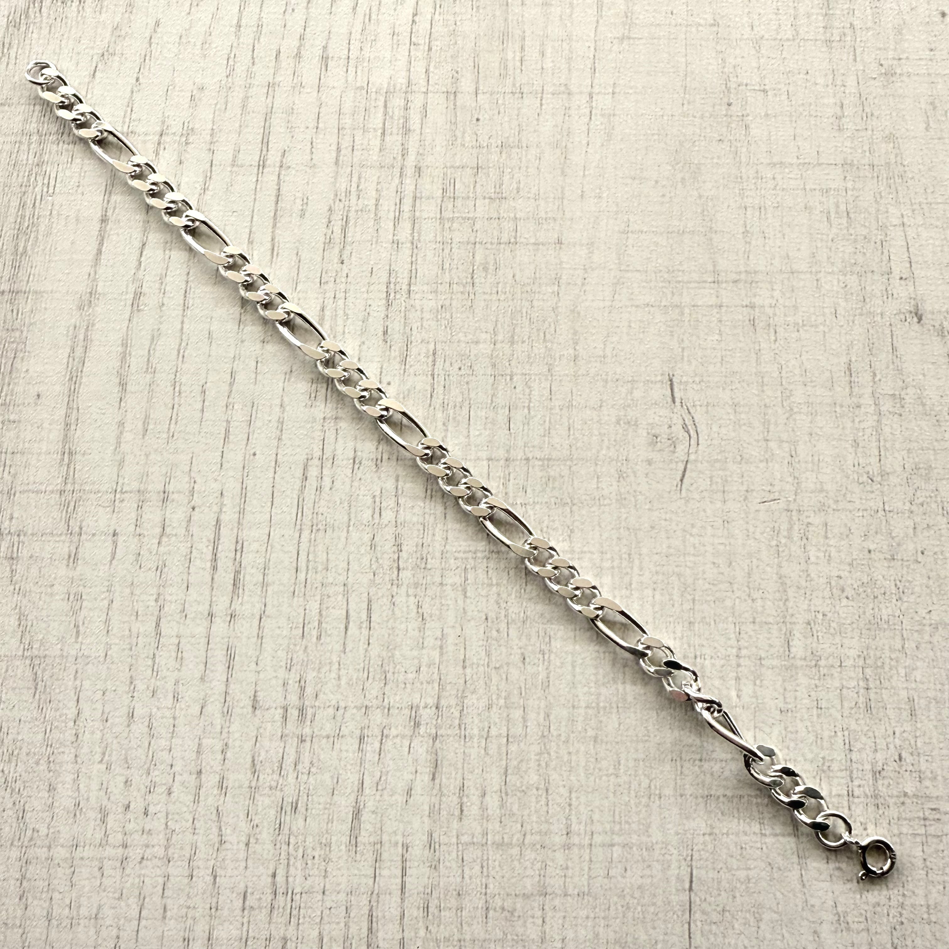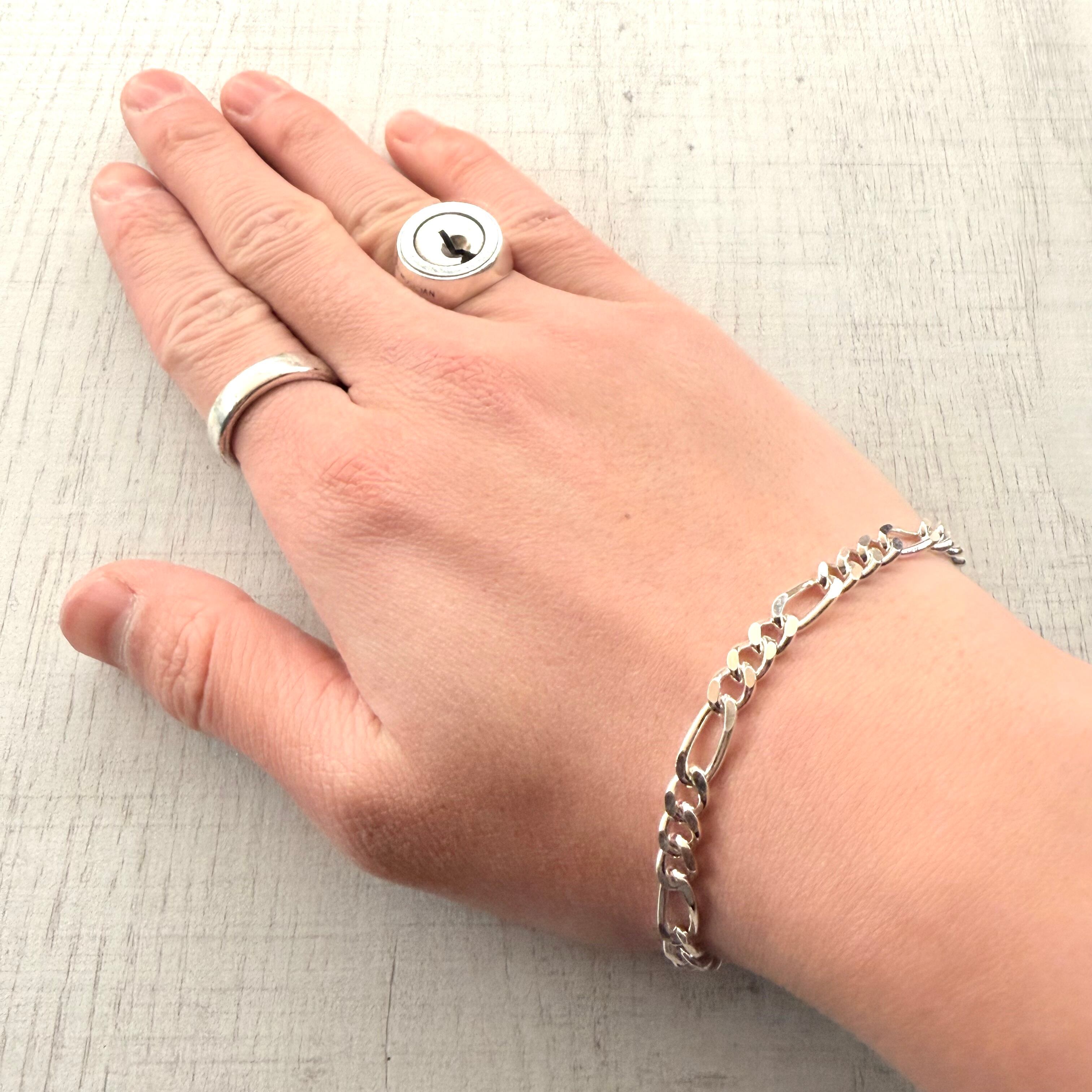 異なる2種類のチェーンリンクを組み合わせた、コントラストが際立つブレスレットです。