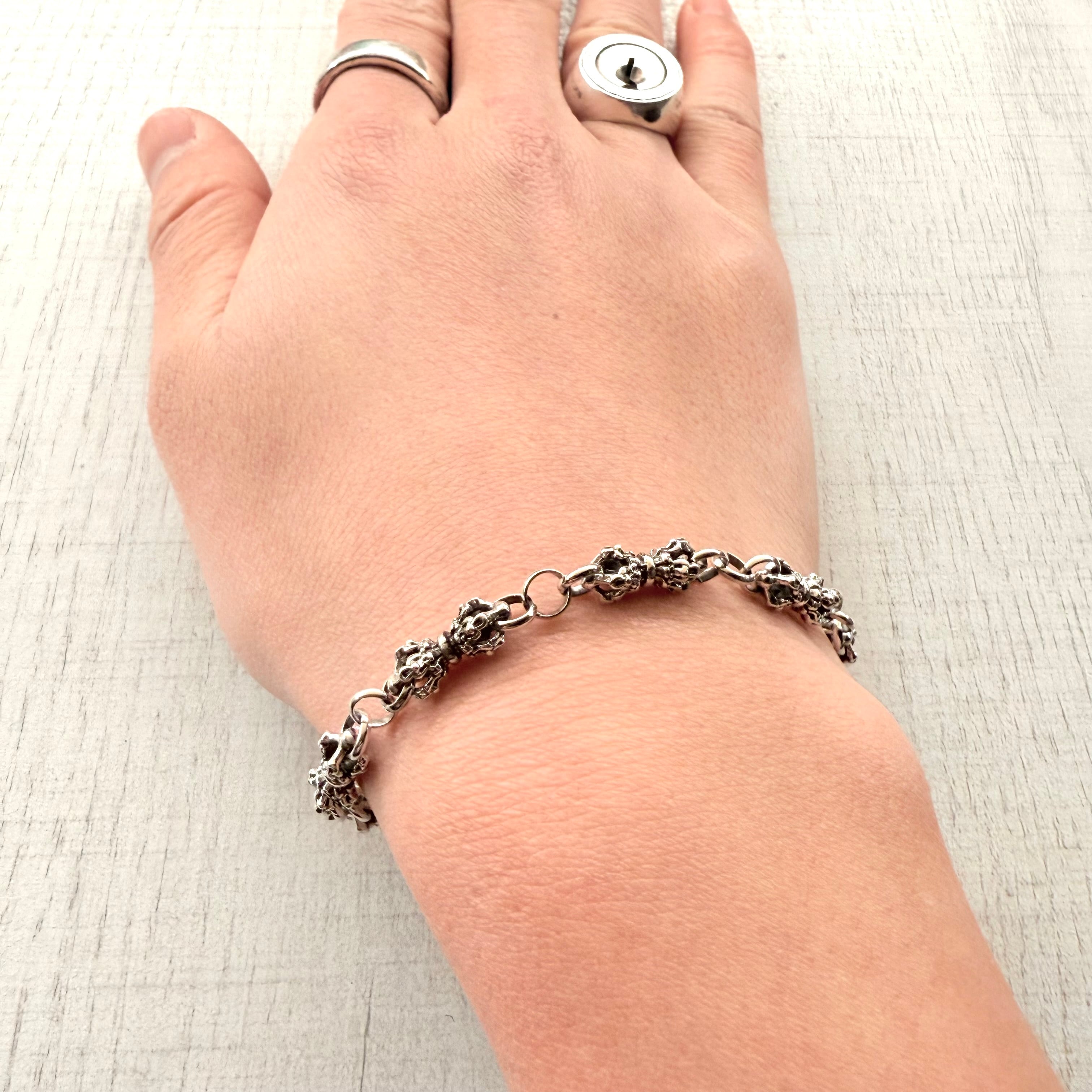 異なるデザインのチェーンリンクを組み合わせた、表情豊かなブレスレットです。