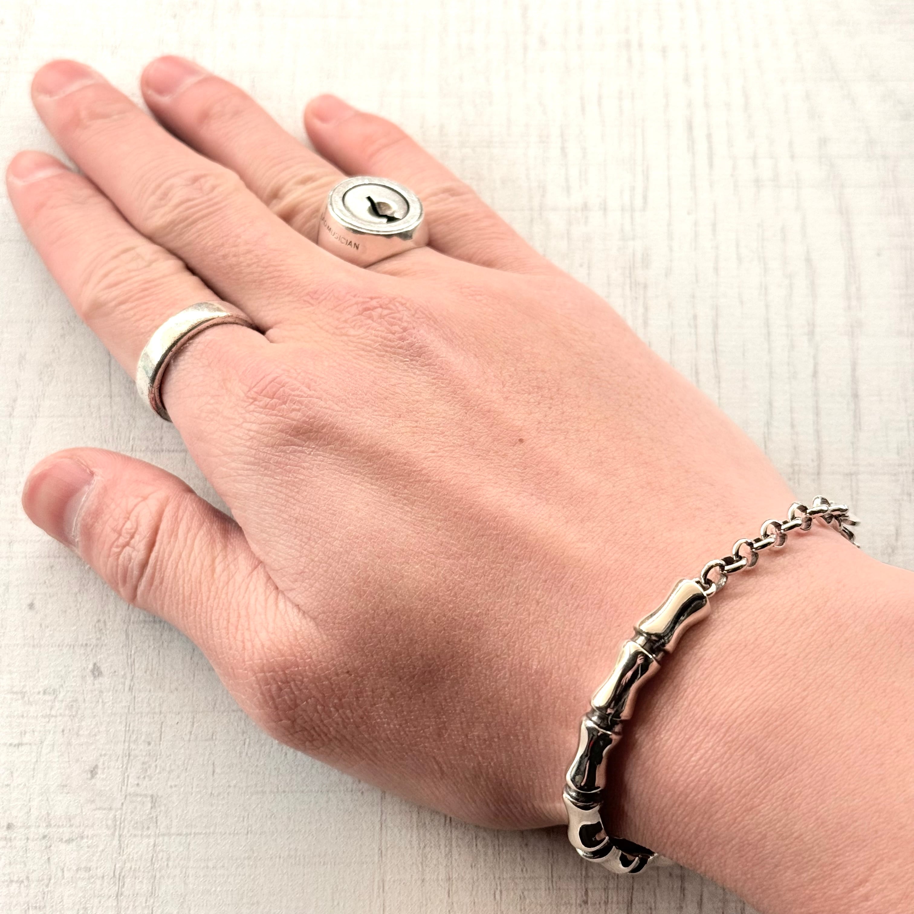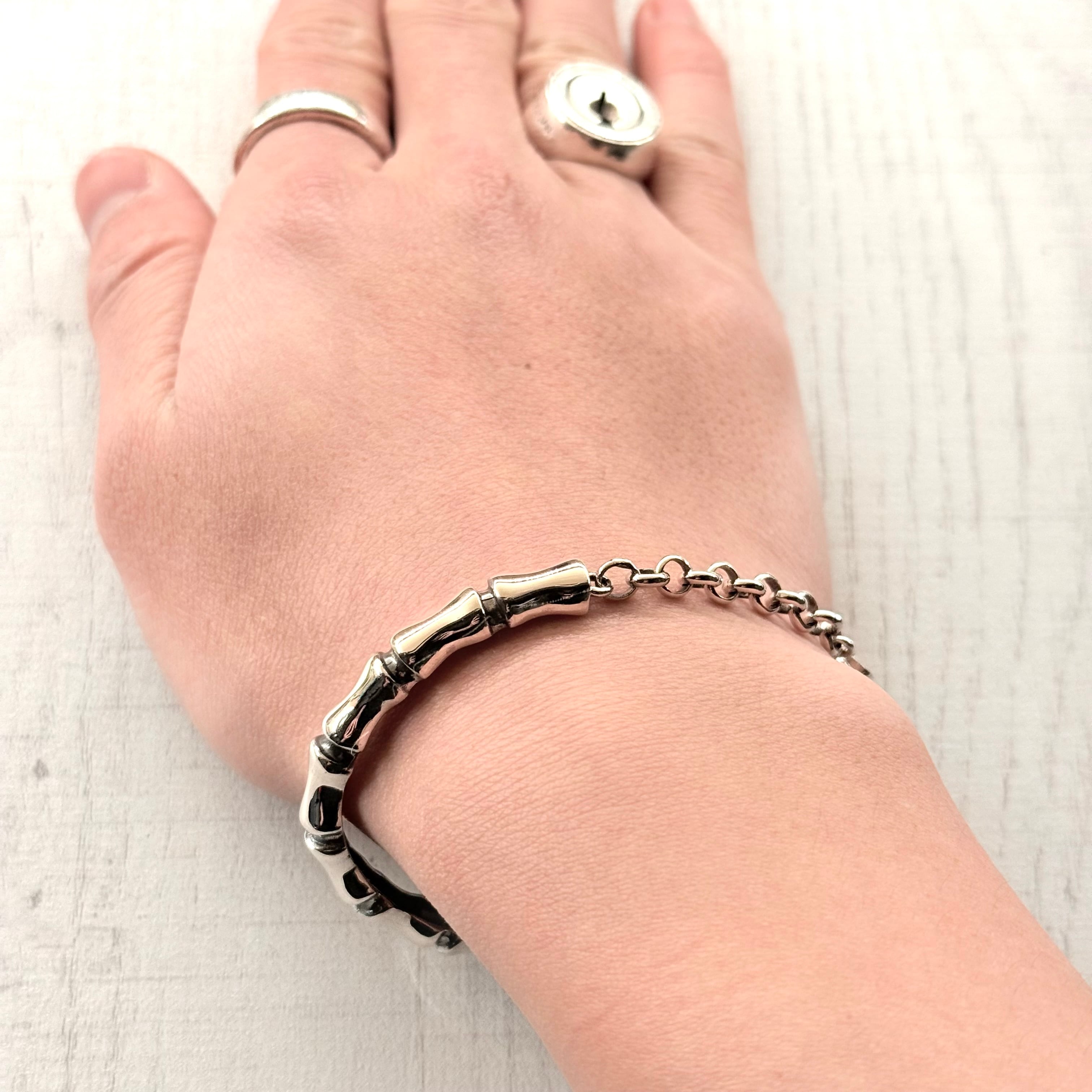 喜平チェーンと異なるリンクデザインを組み合わせた、個性が際立つブレスレットです。