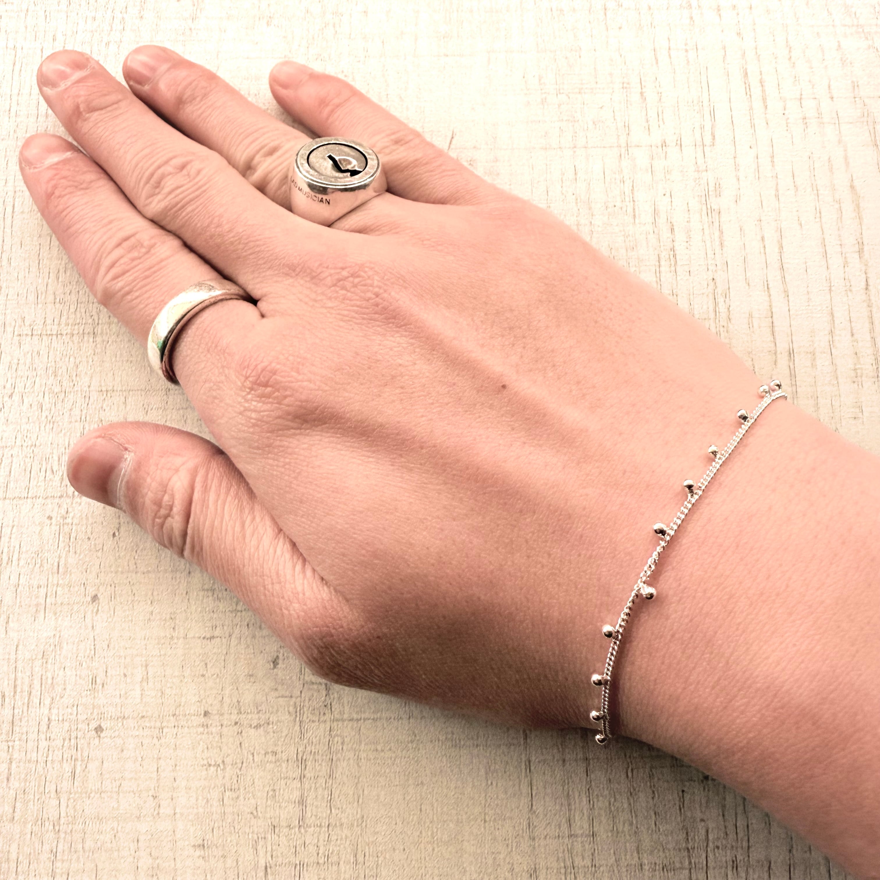 華奢なチェーンに小粒のビーズをあしらった、上品で繊細なブレスレットです。