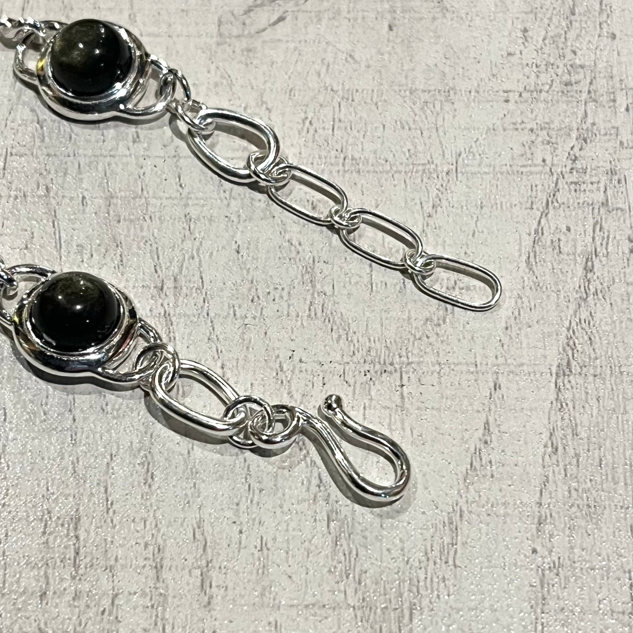 ONYX STONE MOTIF TWIST CHAIN BRACELET -SILVER925- オニキスストーンブレスレット
