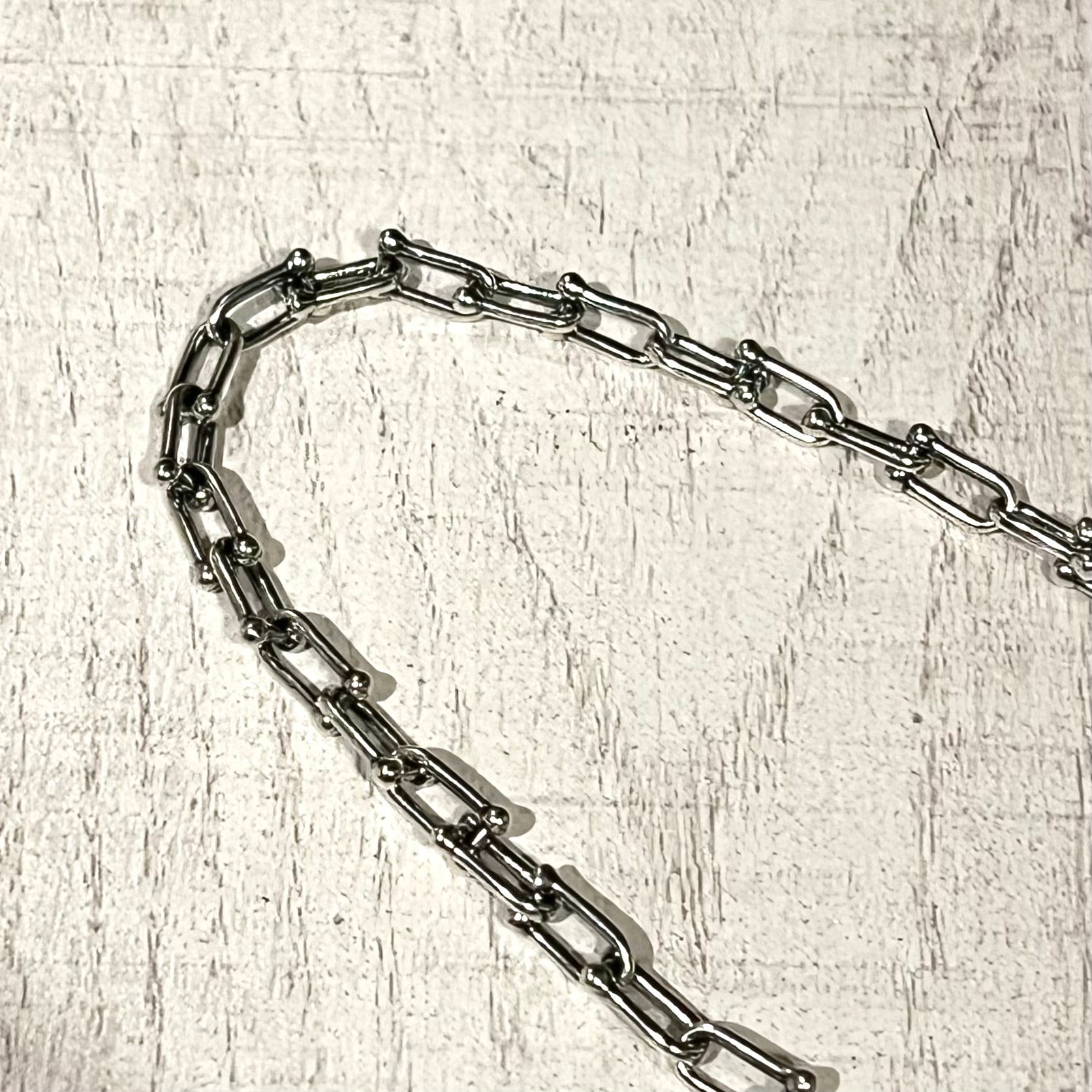 特徴的な形のリンクチェーンで、控えめなサイズ感ながらも、確かな存在感を放つ雰囲気抜群の逸品です。