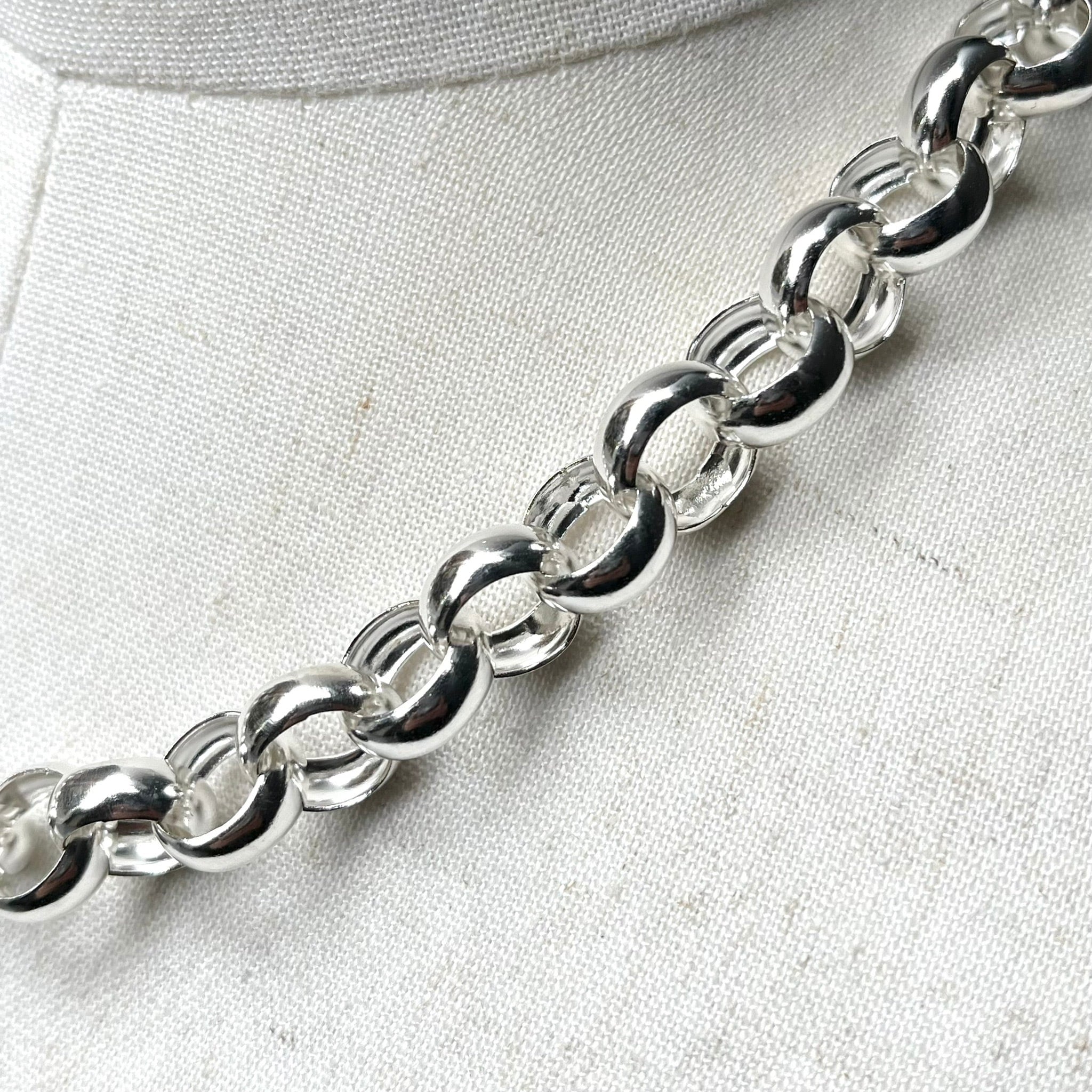 シルバーの滑らかな質感を存分に味わえる、ボリュームのある丸みを帯びたラウンドリンクチェーンです。ヴィンテージライクな要素と現代的なミニマリズムが融合したデザインで、確かな存在感と上品さを兼ね備えた、主役級の逸品です。