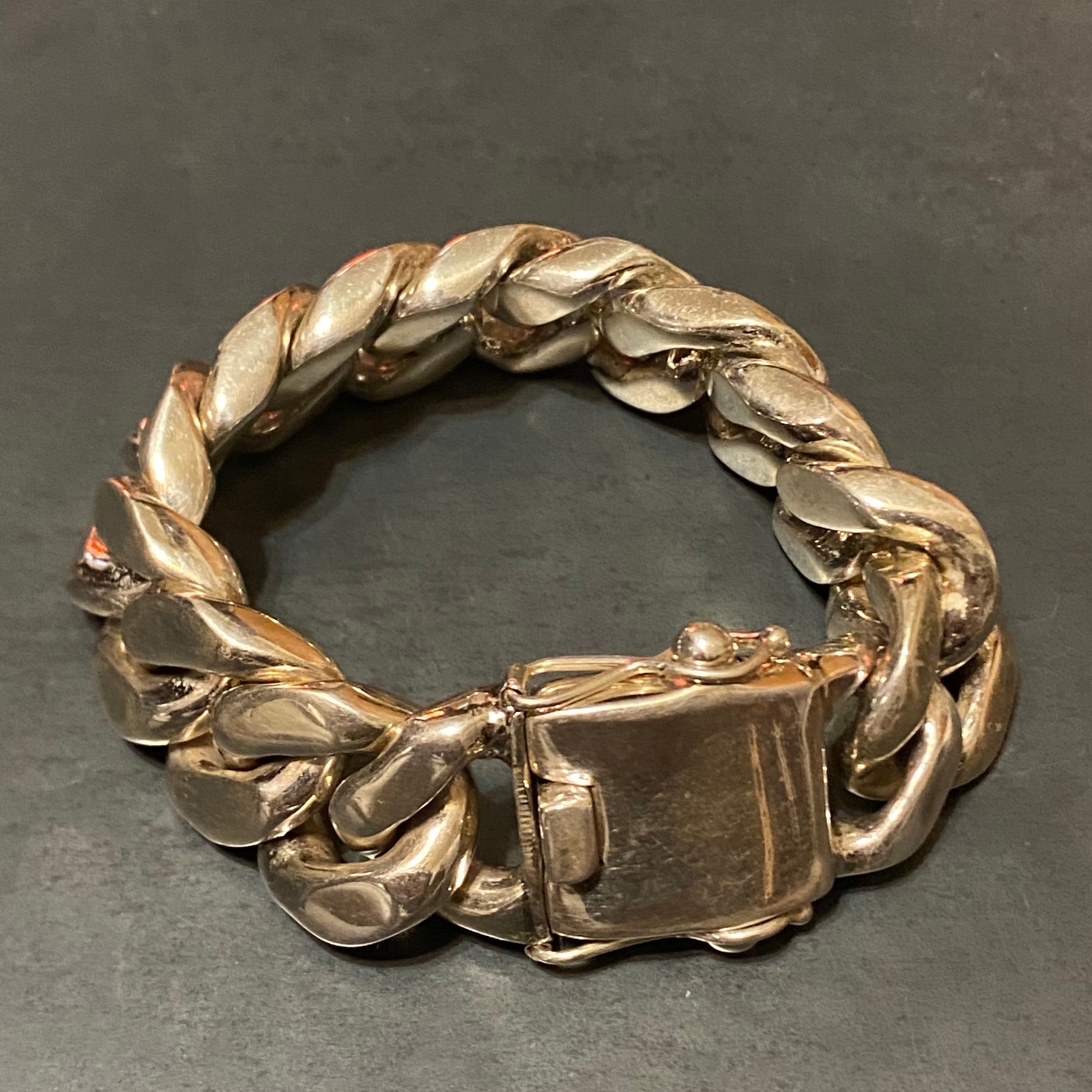 銀の街メキシコ・タスコのシルバー工房で買い付けたヴィンテージ喜平チェーンデザインのシルバーブレスレットです。