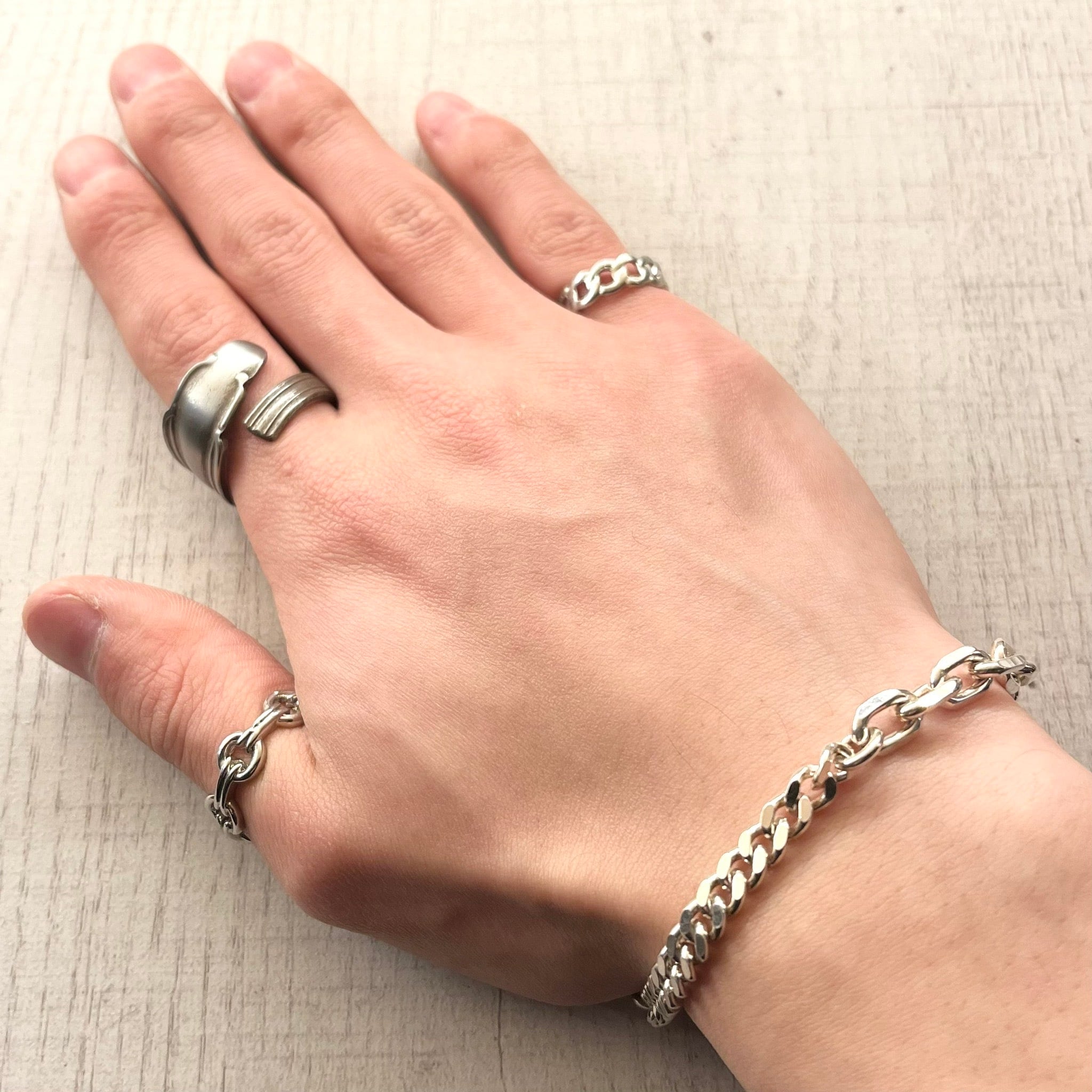 OVAL AND CURB MIXED CHAIN BRACELET -SILVER925- チェーンブレスレット