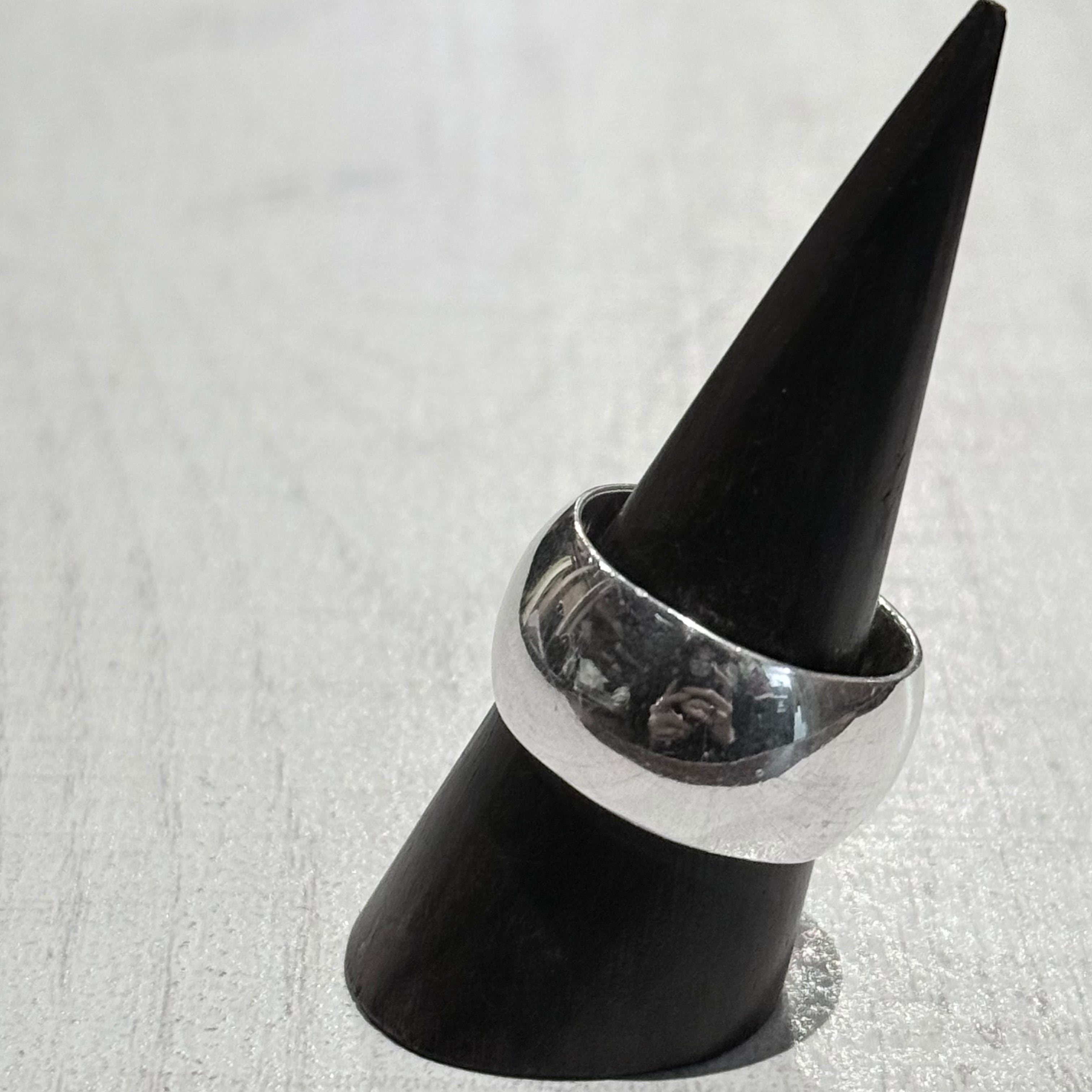 丸みを帯びたドーム型フォルムが印象的な、存在感のあるワイドリングです。