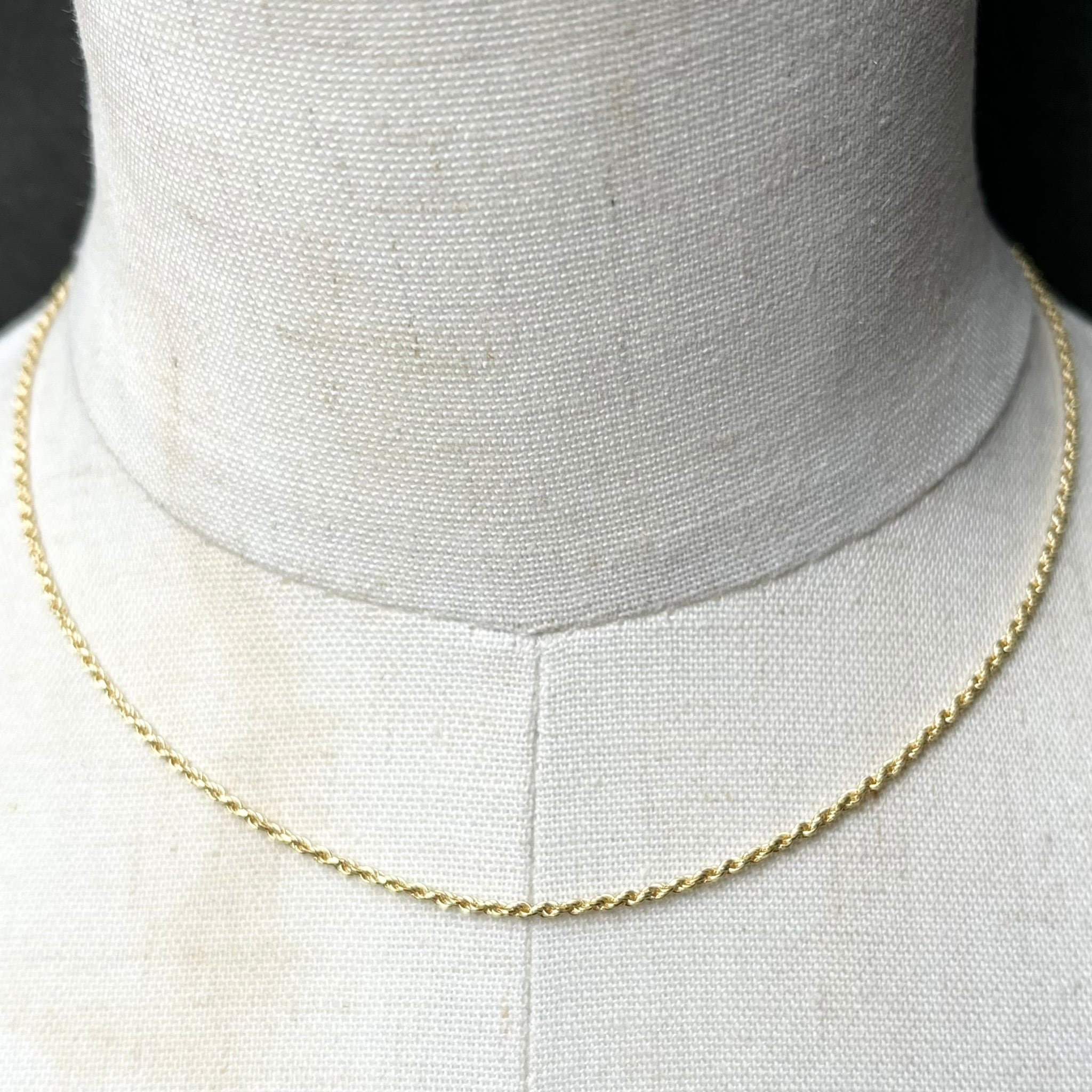 繊細に編み込まれたロープチェーンに、スタイリッシュなマンテルをフロントにあしらったネックレスです。ロープチェーン特有の立体感のある輝きが、首元を華やかに彩る逸品です。