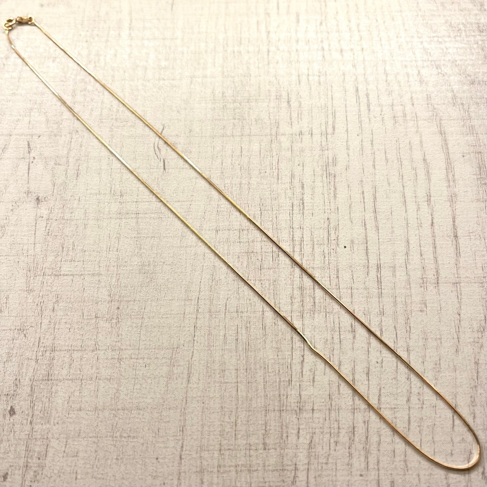 肌に馴染むしなやかな質感が魅力の、細身なスネークチェーンネックレスです。繊細な仕上がりのチェーンが、滑らかな光沢を放つ逸品です。