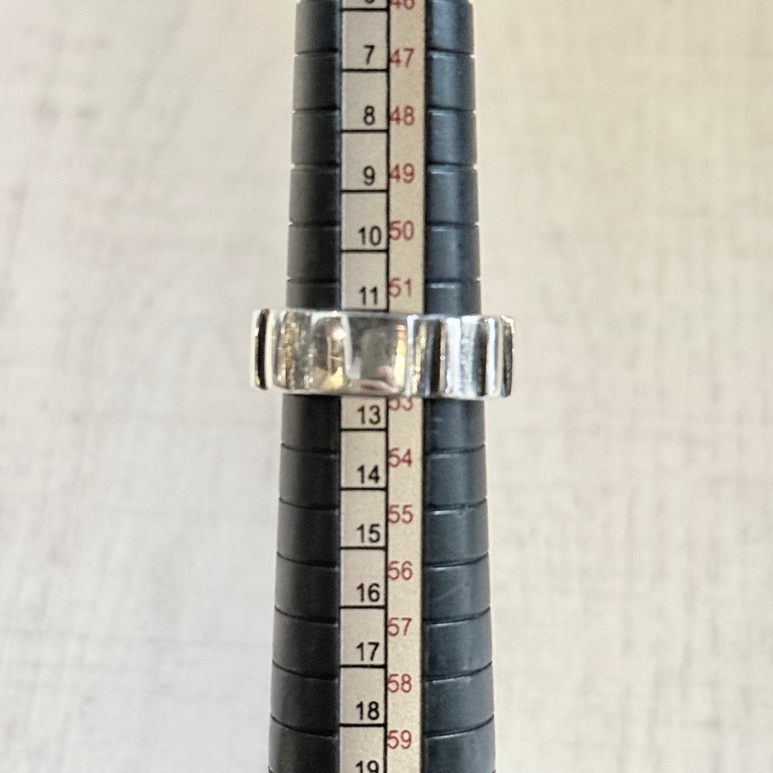 洗練されたストライプデザインが指元にさりげない存在感を与えるリングです。