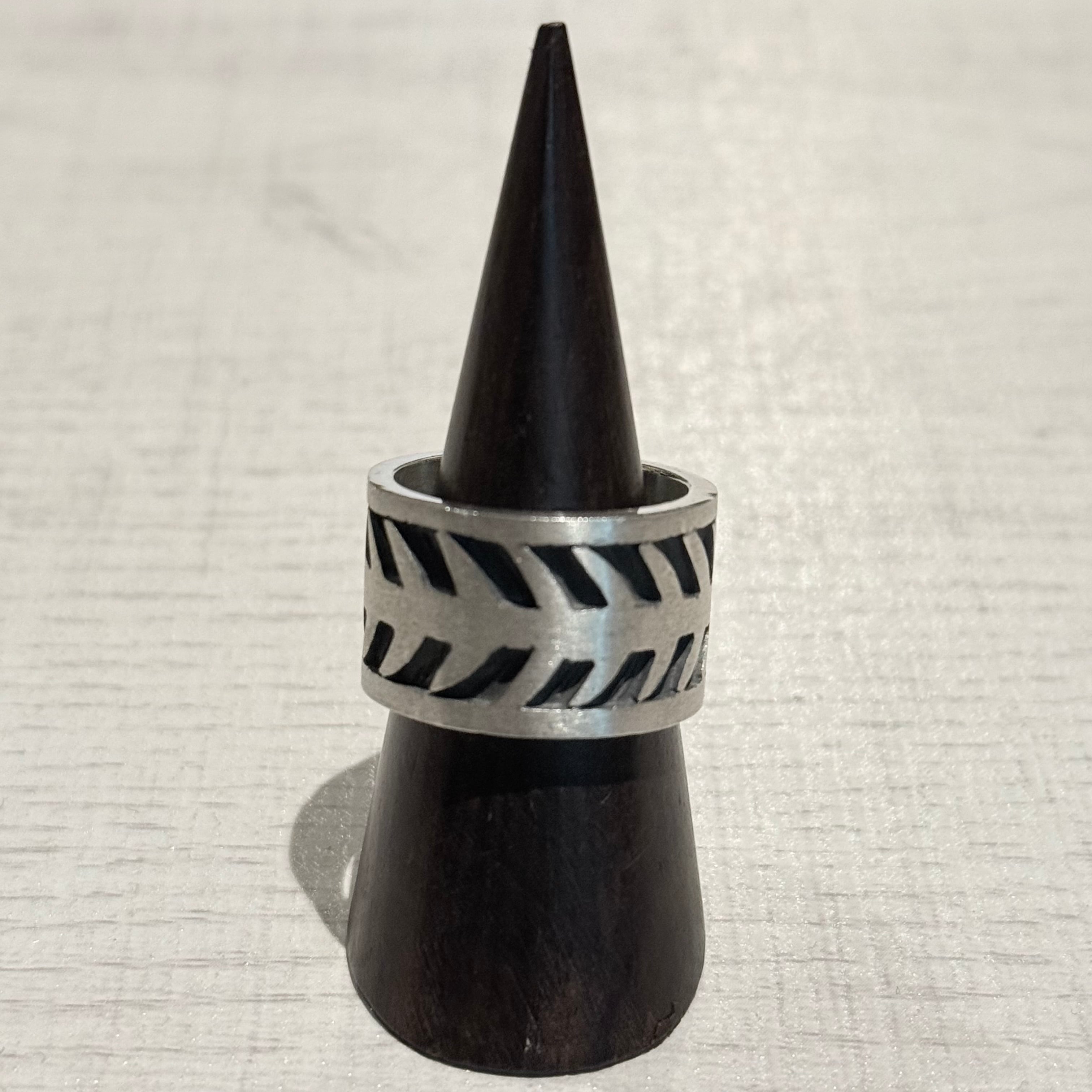 伝統的なネイティブモチーフを取り入れた存在感のあるワイドリングです。