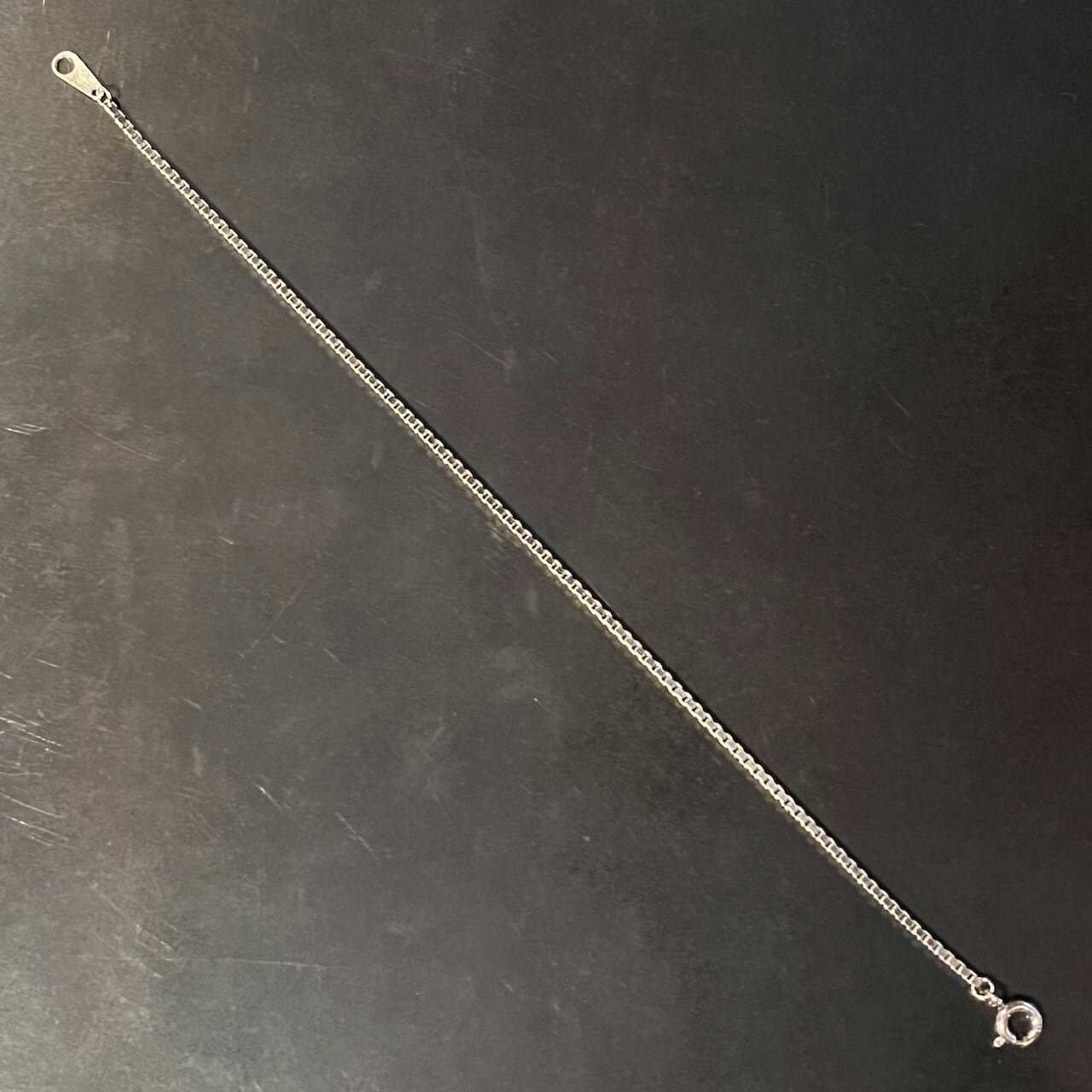海外で買い付けたボックスチェーンデザインのシルバーブレスレットです。