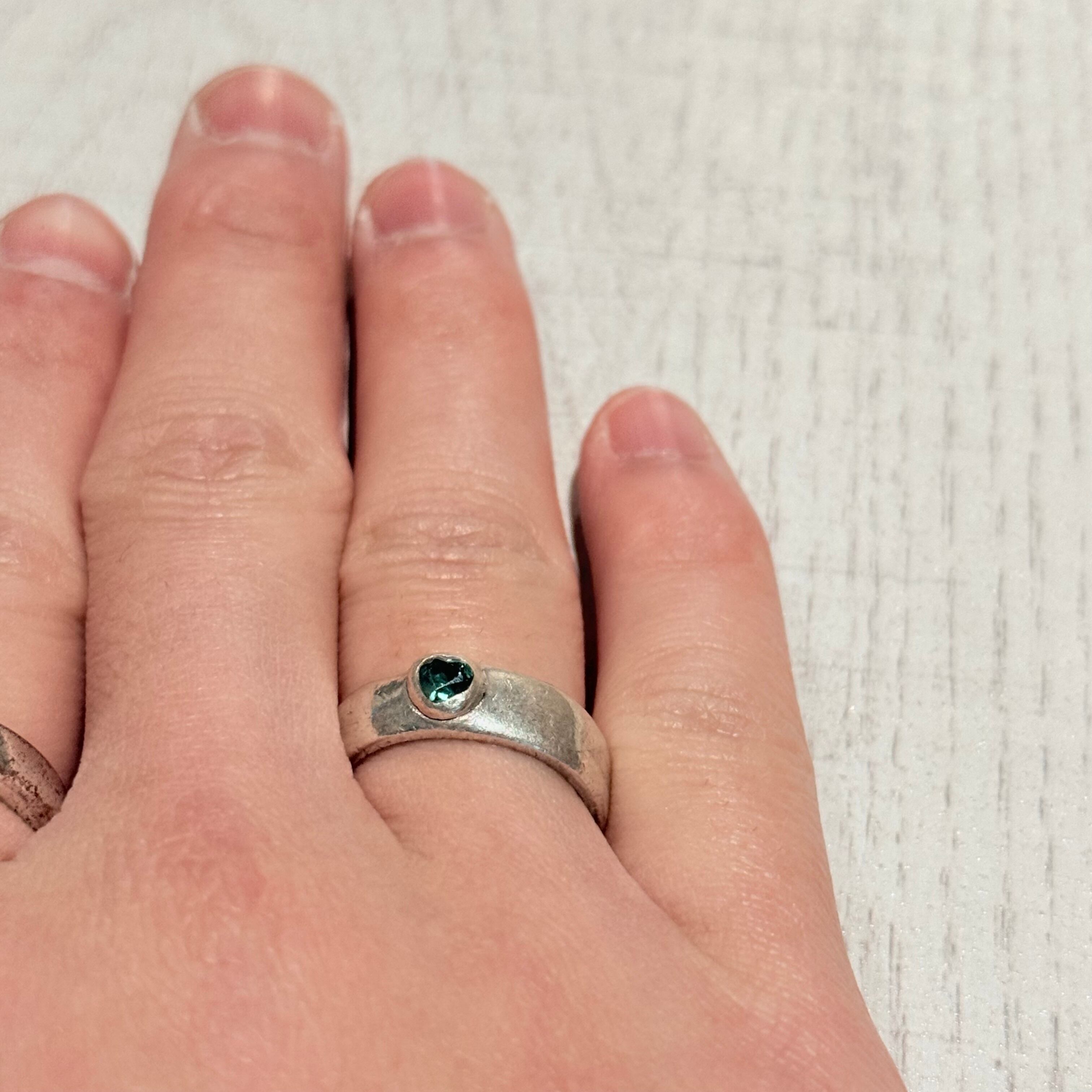 控えめなボリューム感ですが、鮮やかなエメラルドグリーンのストーンが、お手元で程よく存在感を放つ逸品です。