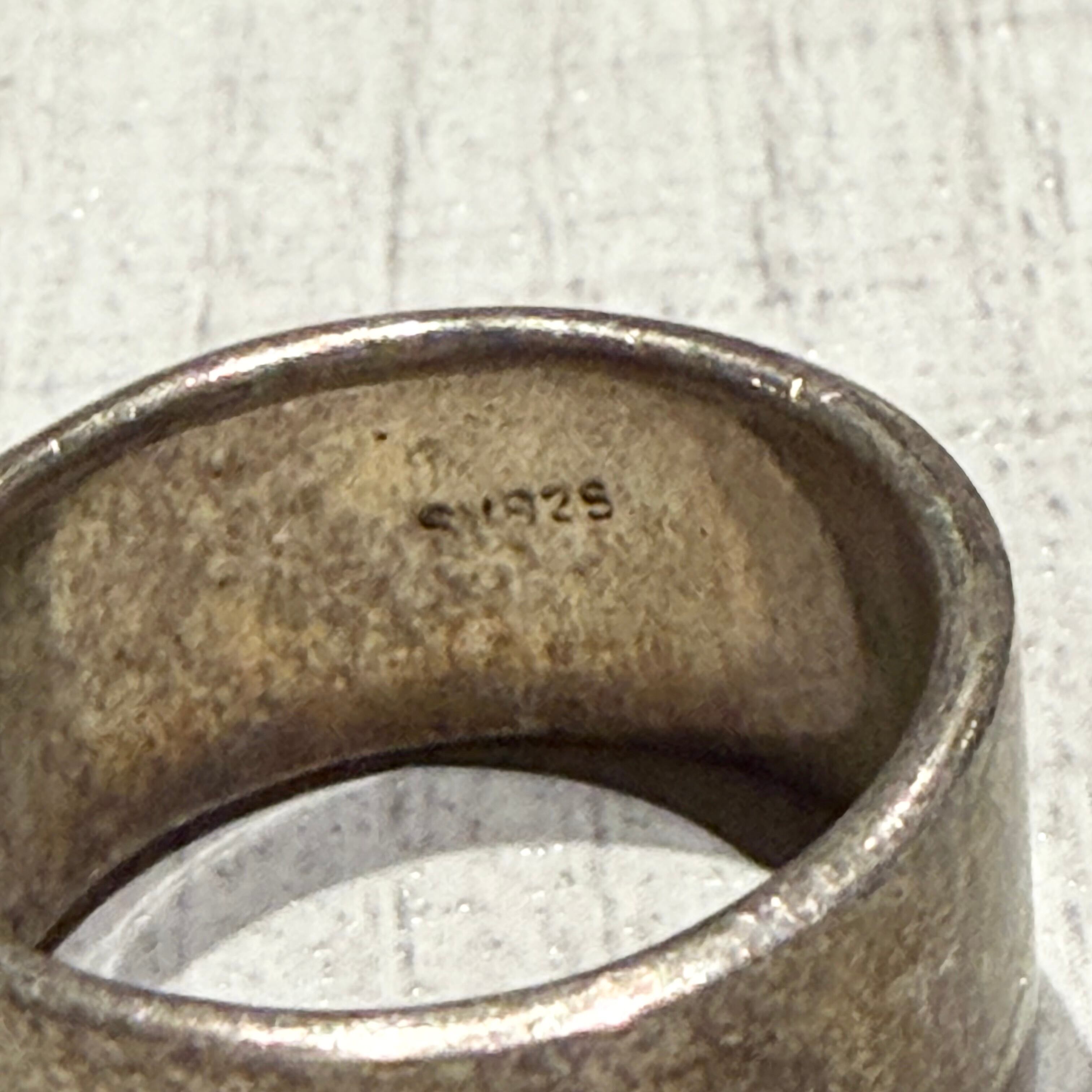 このヴィンテージに着想を得たシルバーリングは、傷ひとつひとつに物語を刻む、生々しくマットな質感が特徴です。