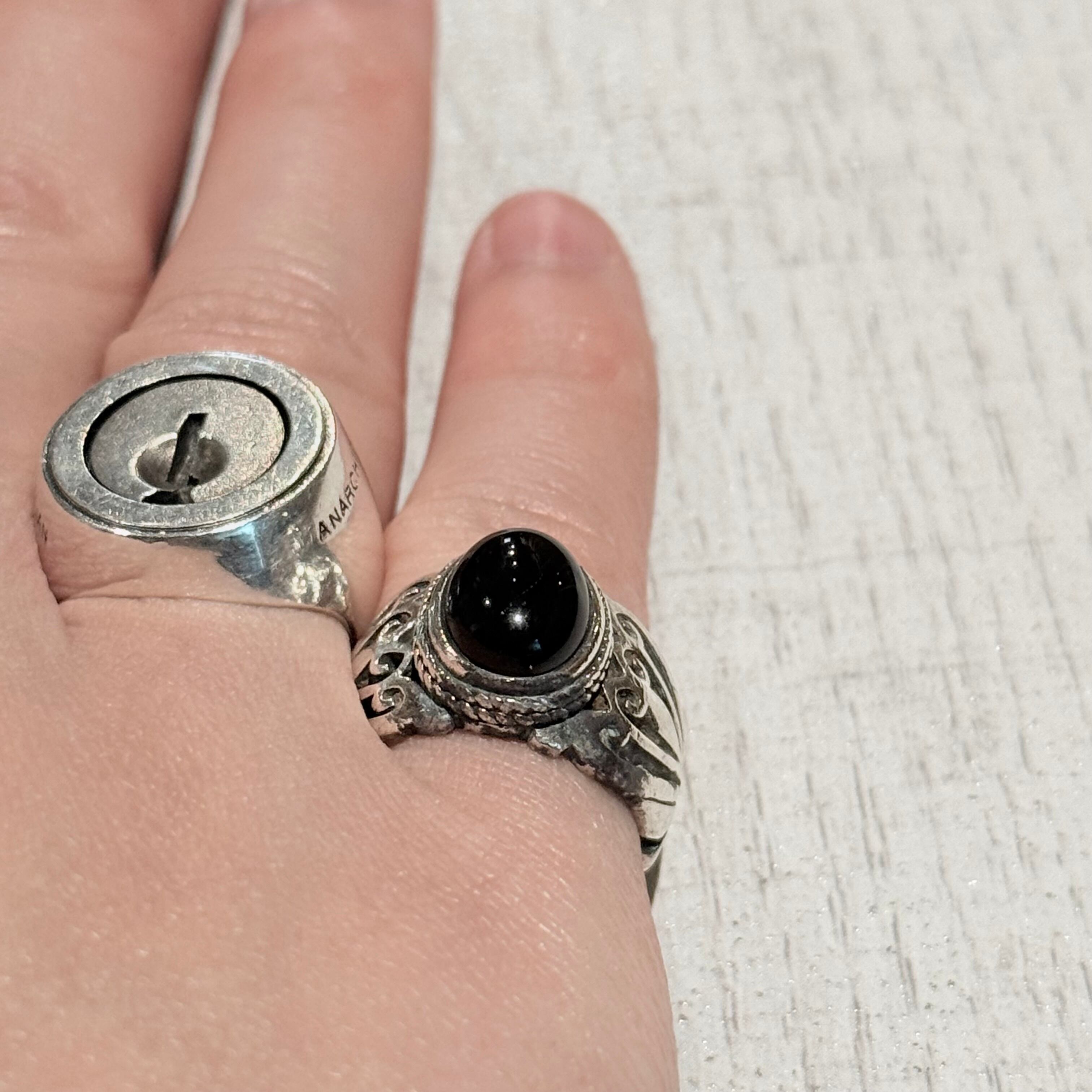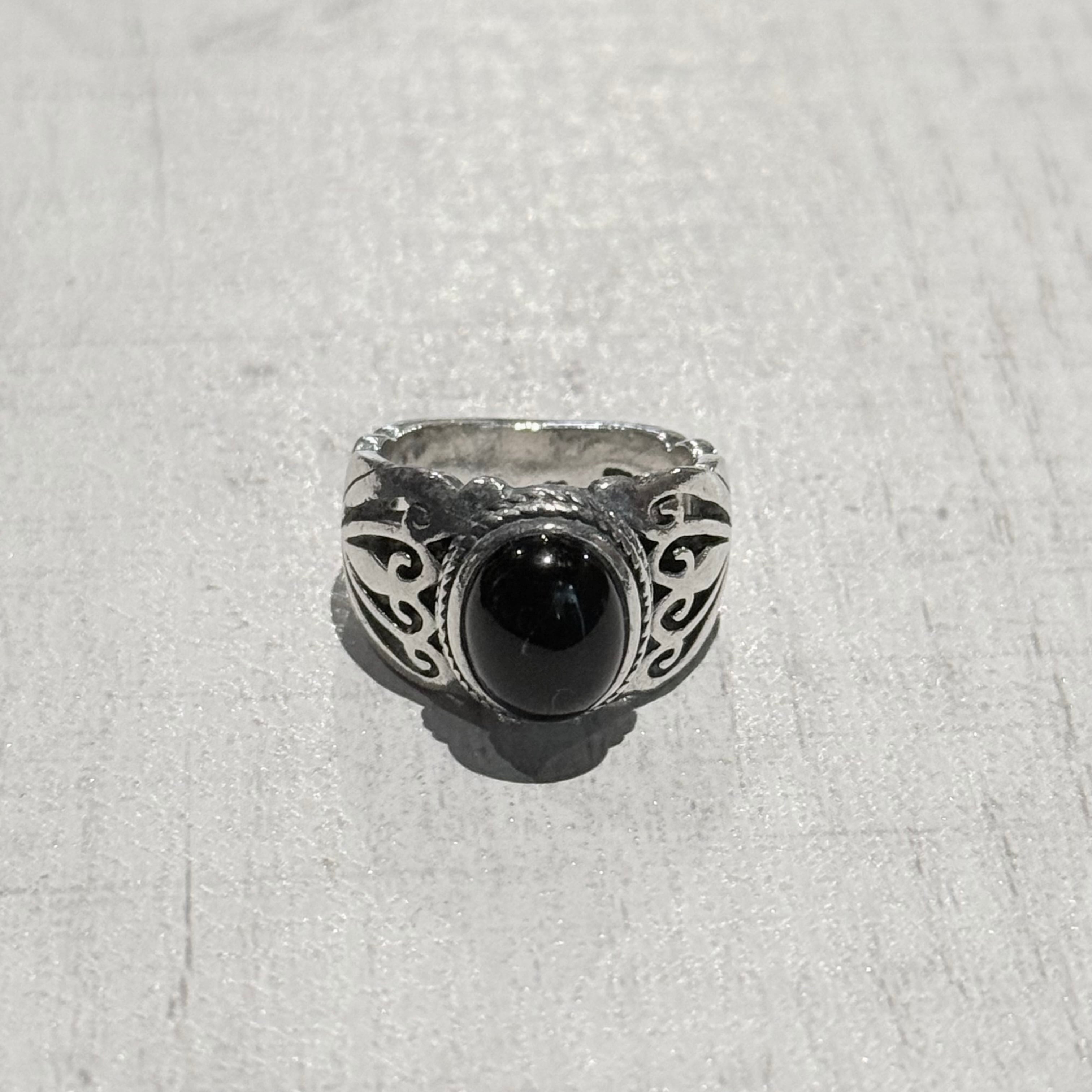 OVAL ONYX STONE DESIGN RING -SILVER925-オニキスストーンリング