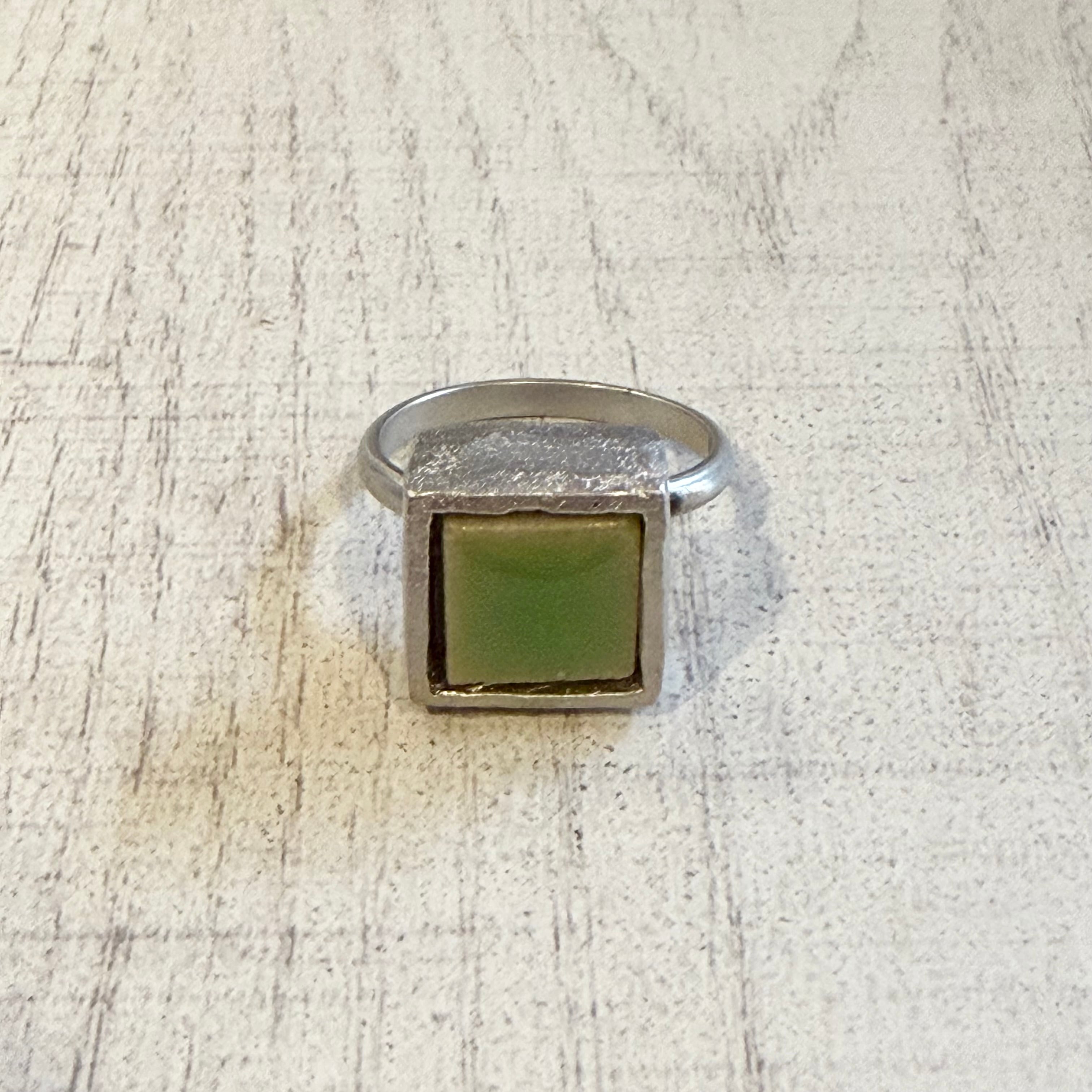 Square Green Stone Silver Ring-SILVER925-ストーンリング