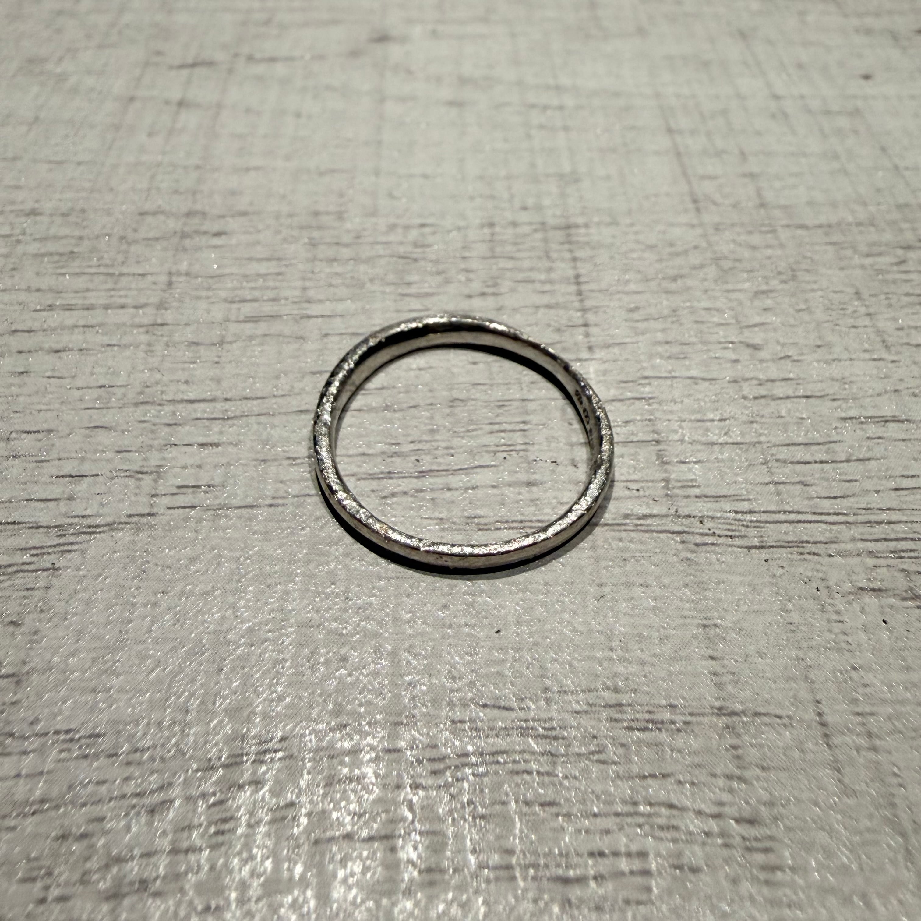 海外買い付けのシルバーリング。この作品は不完全さの中に宿る美しさを捉えています。クレーターのような一つ一つの隆起は静かな力強さを映し出し、動くたびにその影を変化させます。これは単なる指輪ではなく、指先に纏う静かな風景であり、日常を超越した時の物語を語りかけます。