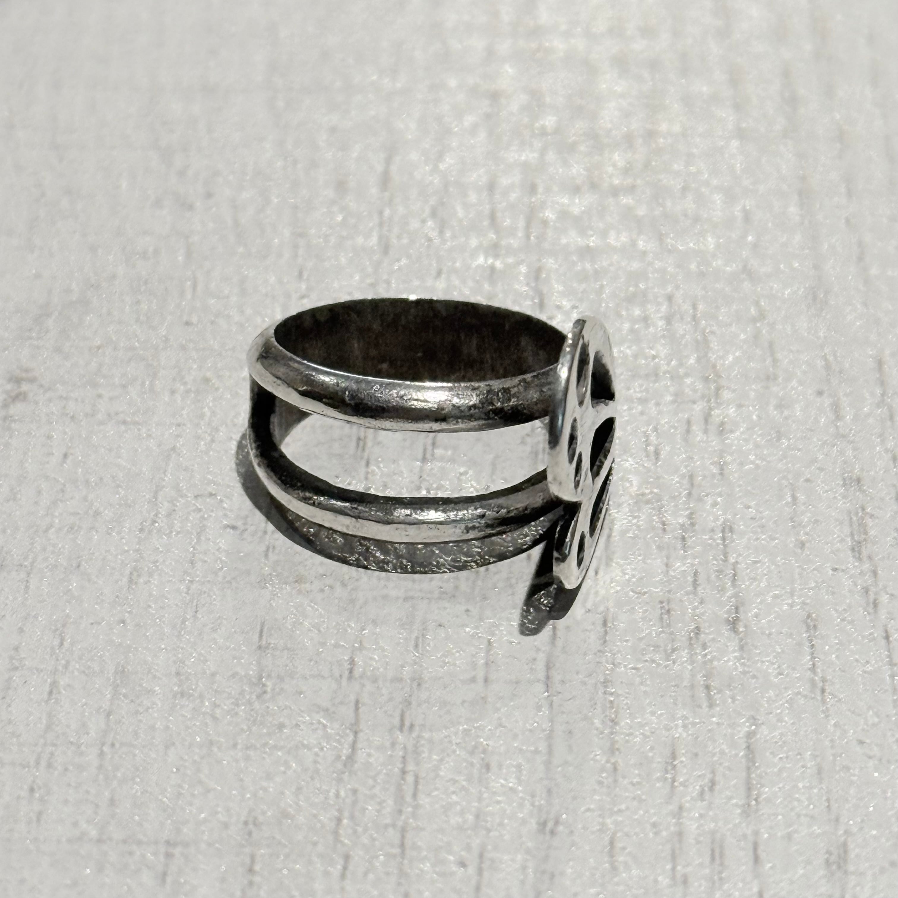蝶の羽を思わせる軽やかな透かし彫りが目を引く、アーティスティックなリングです。