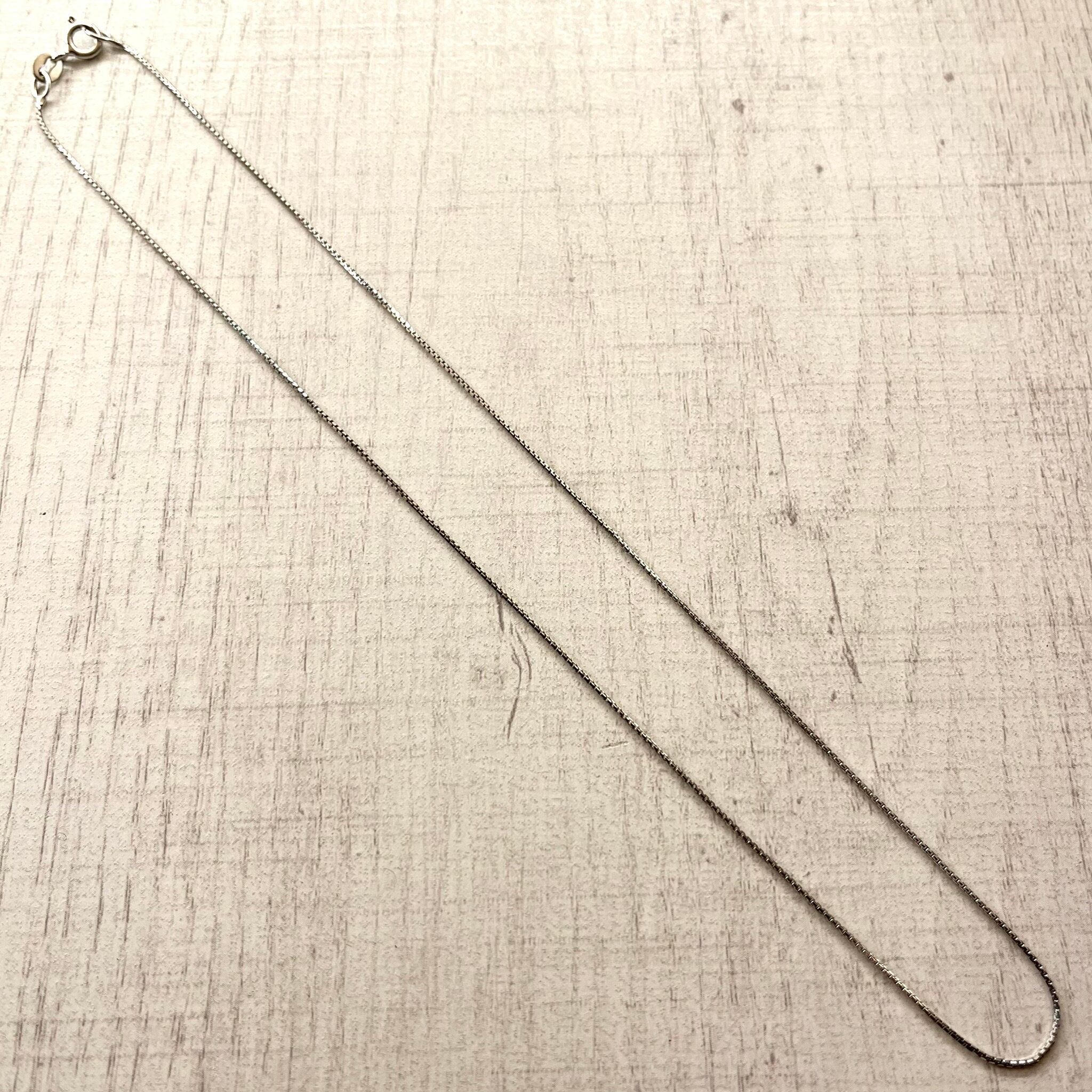 ボックスが連なったような構造のベネチアンチェーンで、シンプルながらも上品な存在感を放つ逸品です。