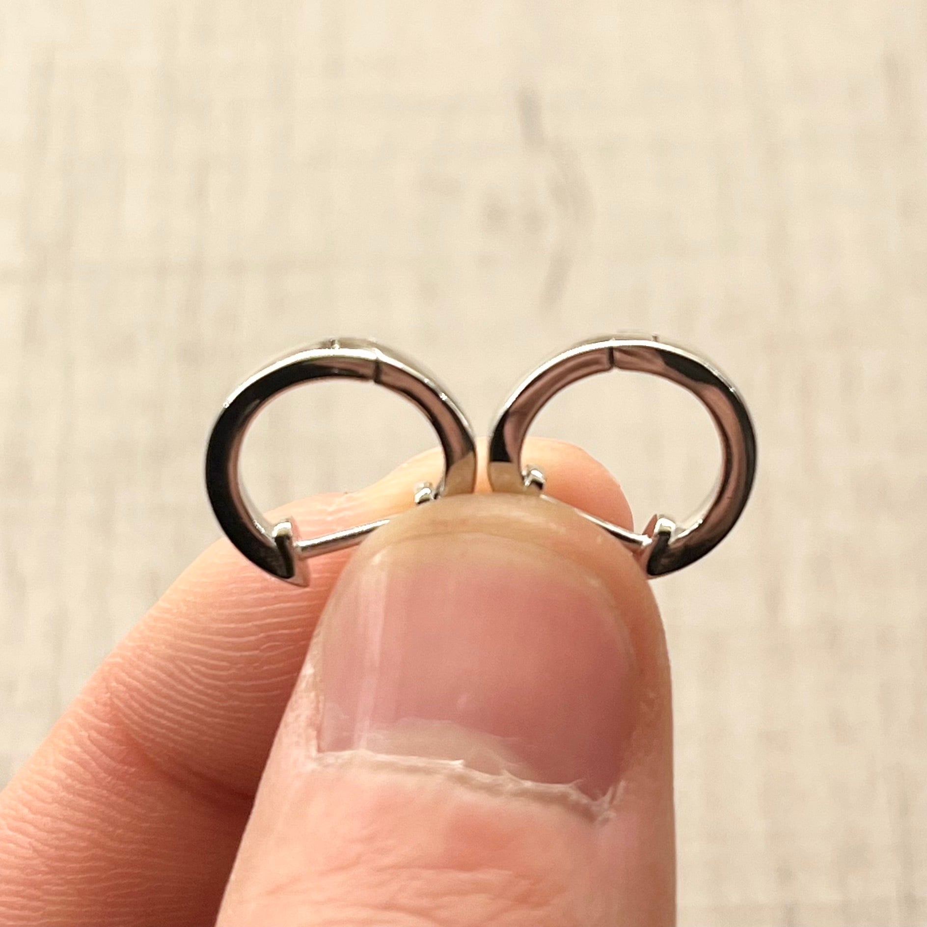 先がフックのような形になったデザインで、プレーンながらもさりげなくアクセントの効いた逸品です。