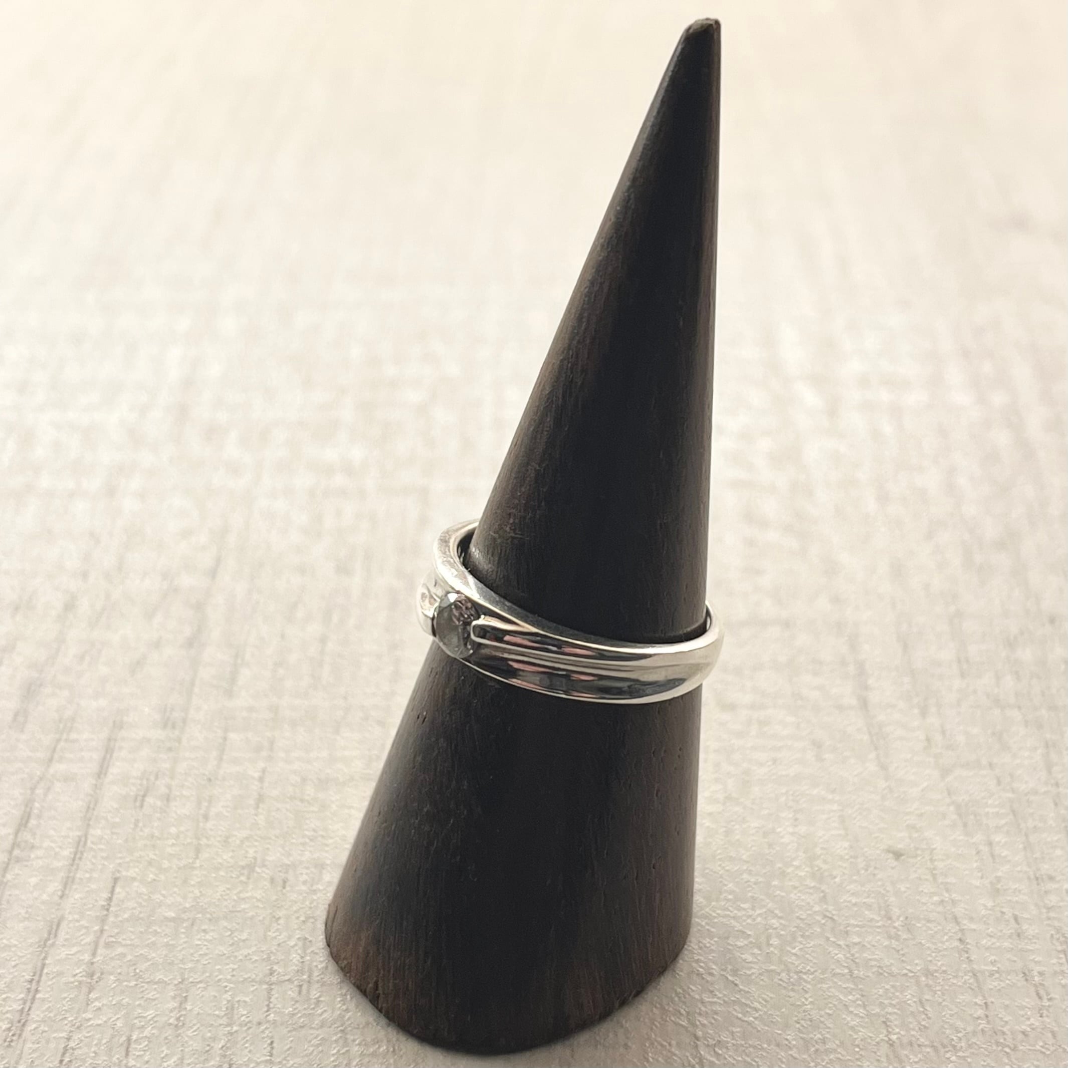 緩やかにねじれたデザインで、程よくアクセントの効いたリングです。中央に配されたストーンがさりげなく存在感を放つ、華やかな逸品です。