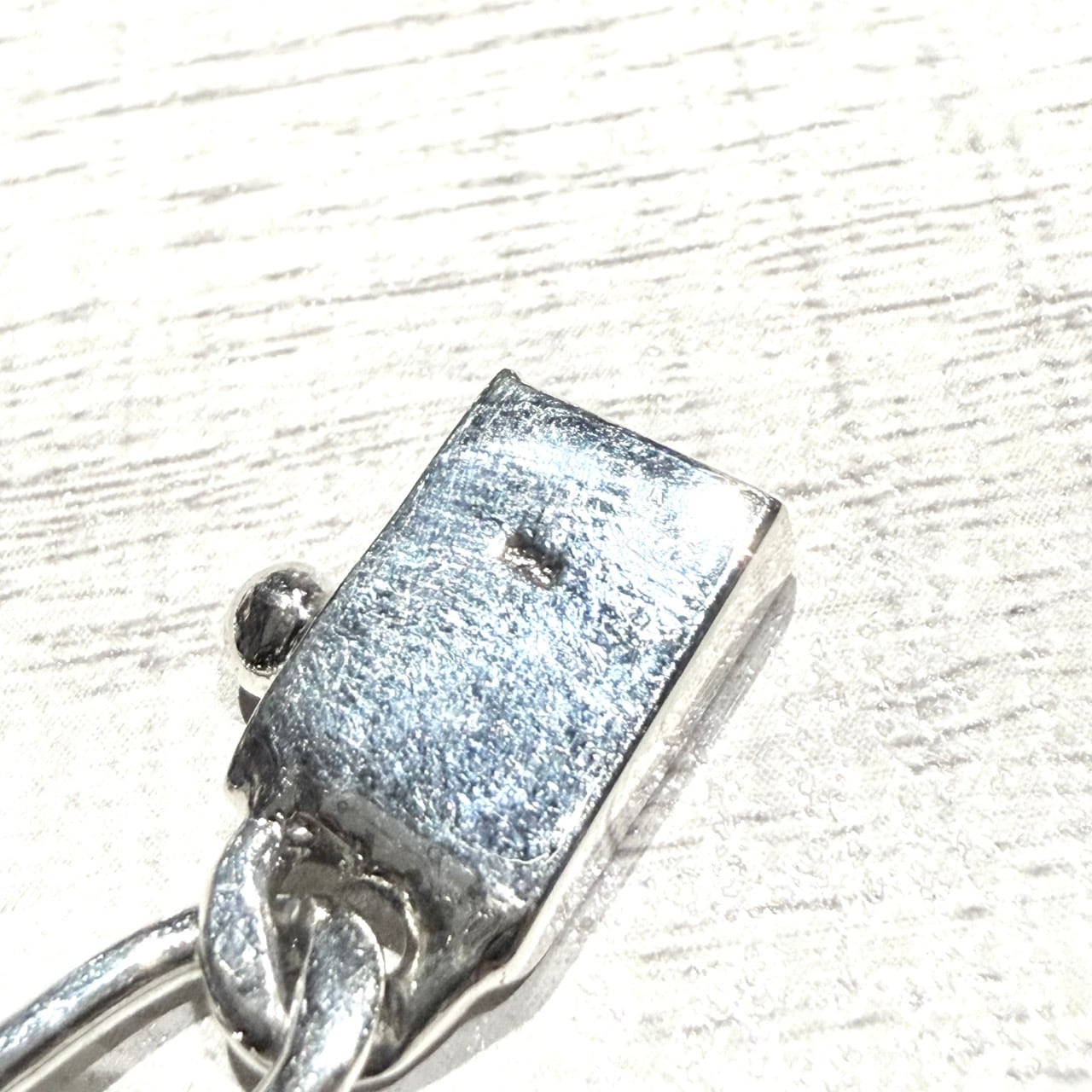 大小のリンクを絶妙なリズムで組み合わせたこのデザインは、単調にならず、手元に洗練された動きを与えてくれます。ヴィンテージのような重厚感と、現代的なミニマリズムが同居した一品です。