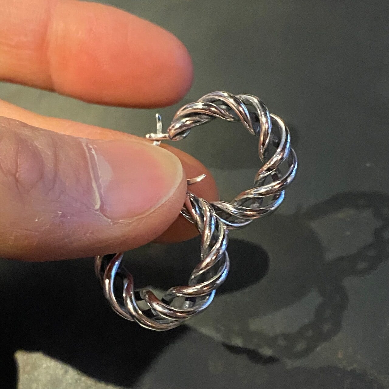 details:海外で買い付けたツイストデザインのフープピアスです。
