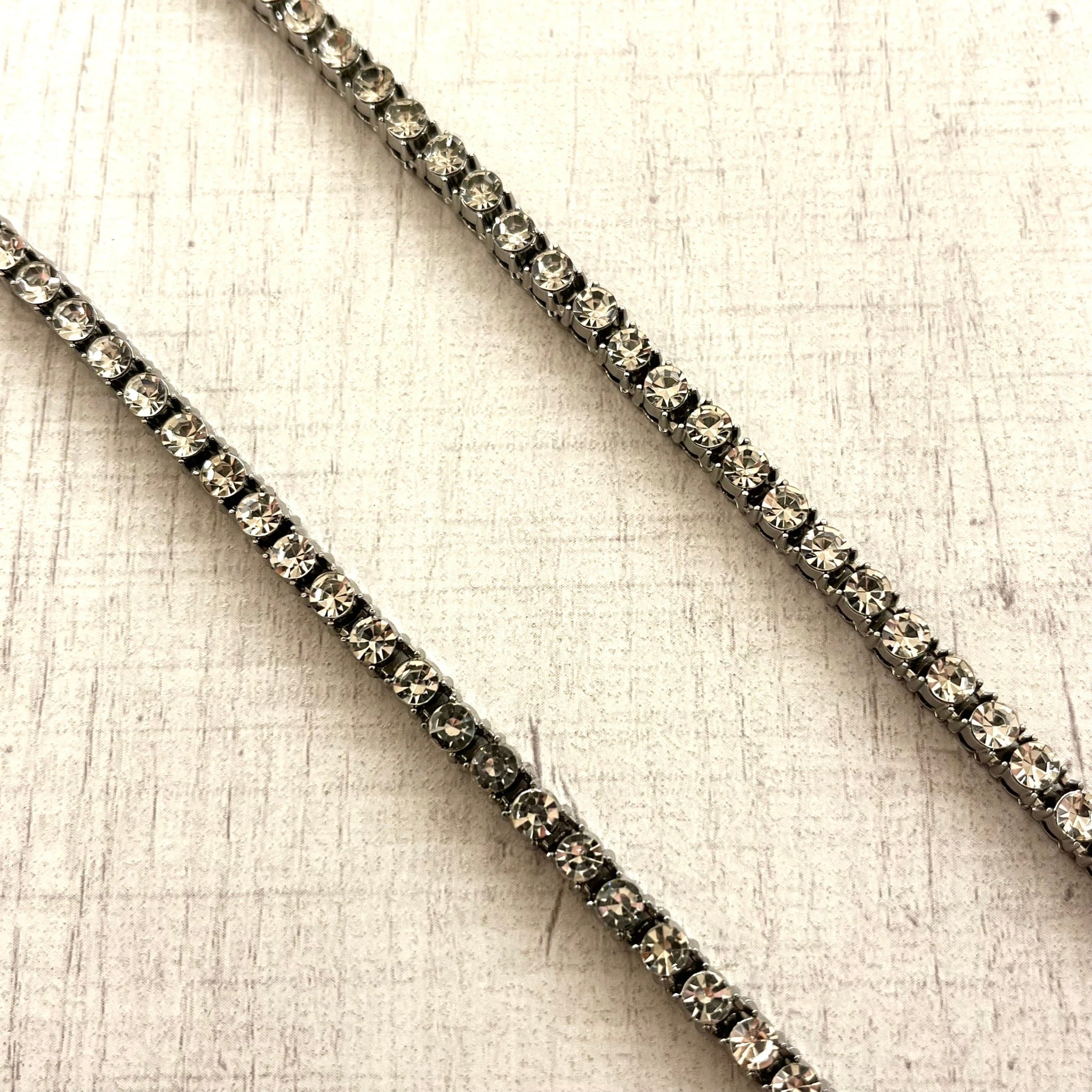ボリューム感のあるテニスチェーンに、輝きを放つグリッターが配されたデザインで、存在感抜群の逸品です。