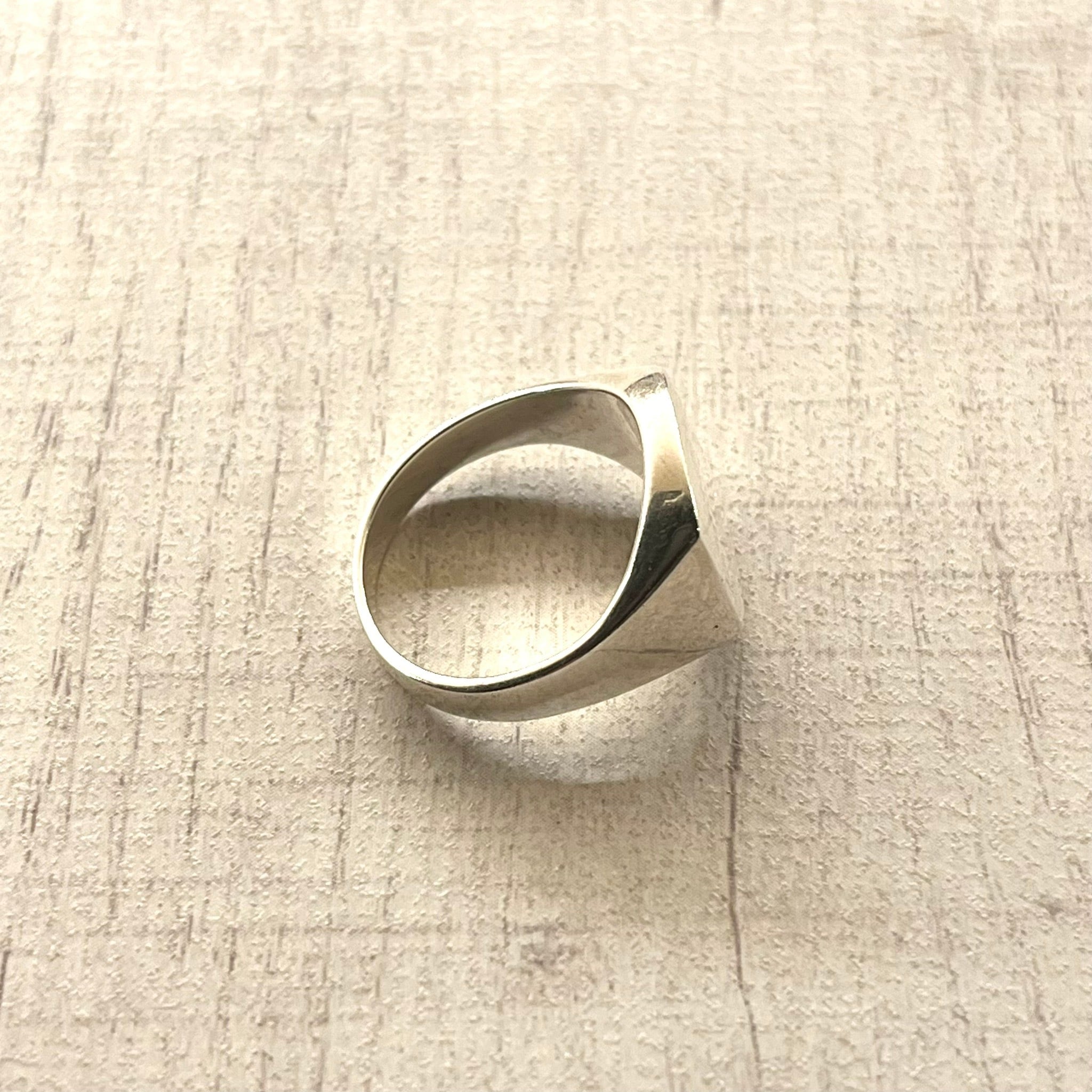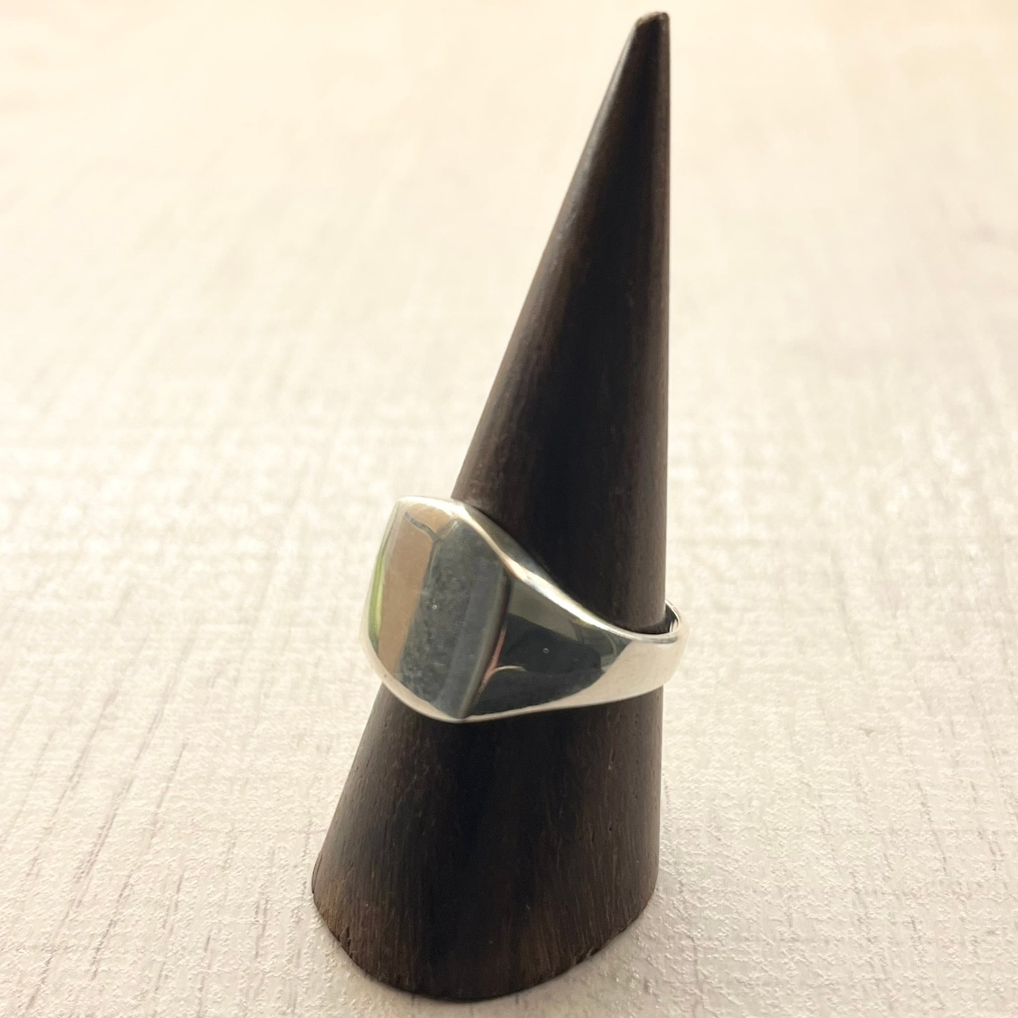 シンプルながらも存在感のある、スクエア型の印台リングです。無駄な装飾が削ぎ落とされたデザインで、シルバー特有の美しい光沢が際立つ逸品です。